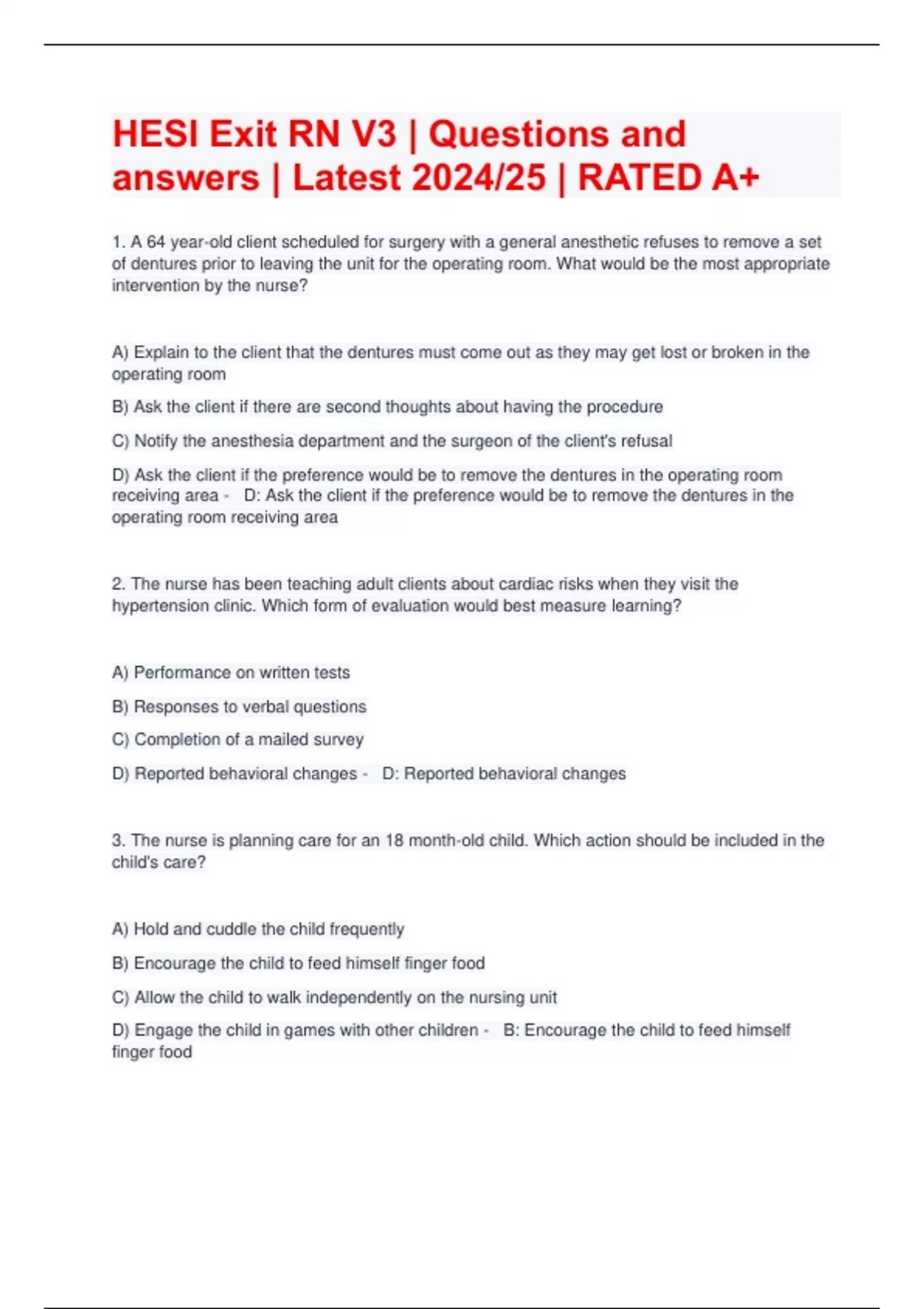 HESI Exit RN V3 | Questions and answers | Latest 2024/25 | RATED A+