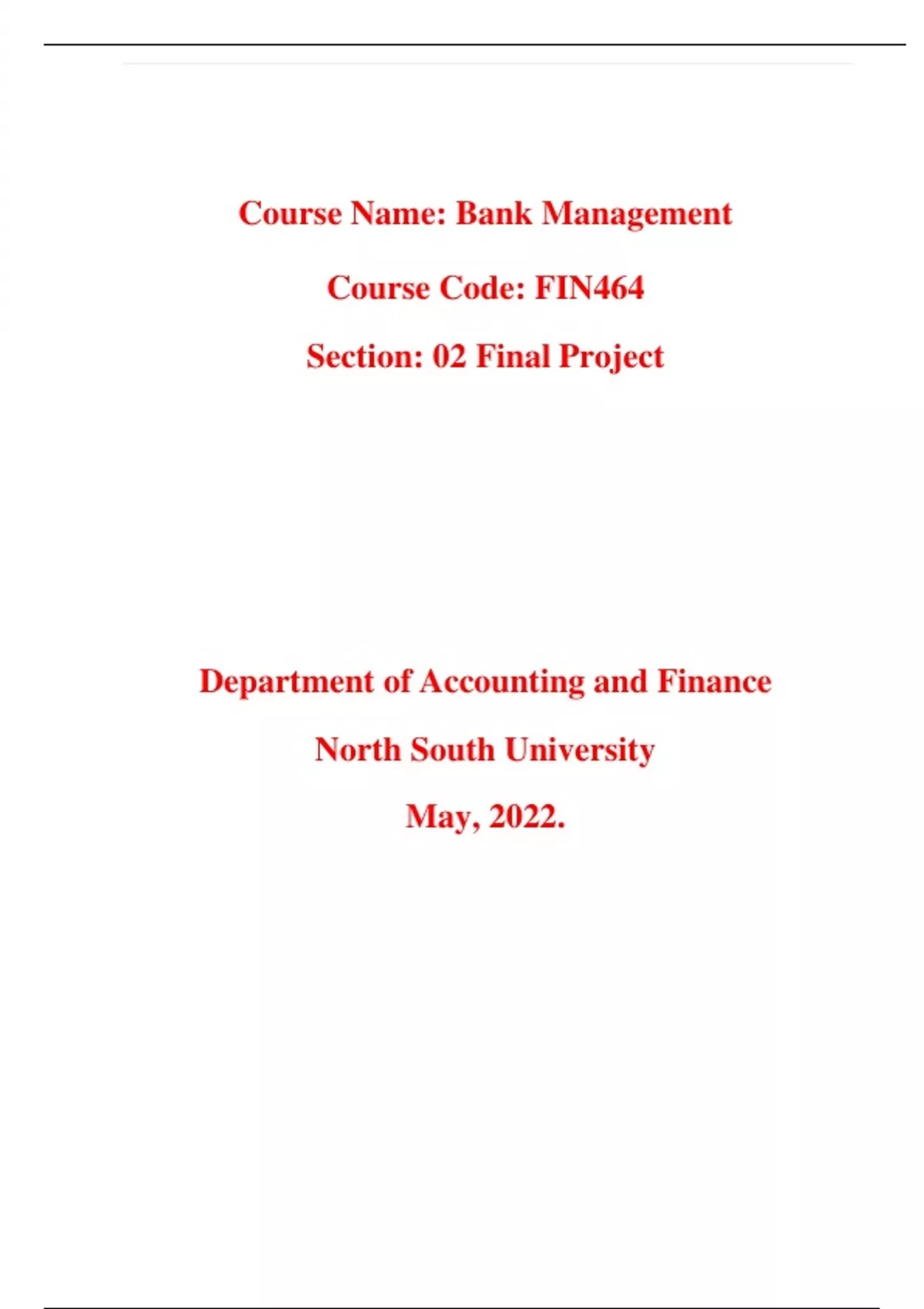 FIN 464 Bank Management_Section 02 Final Project. North South University