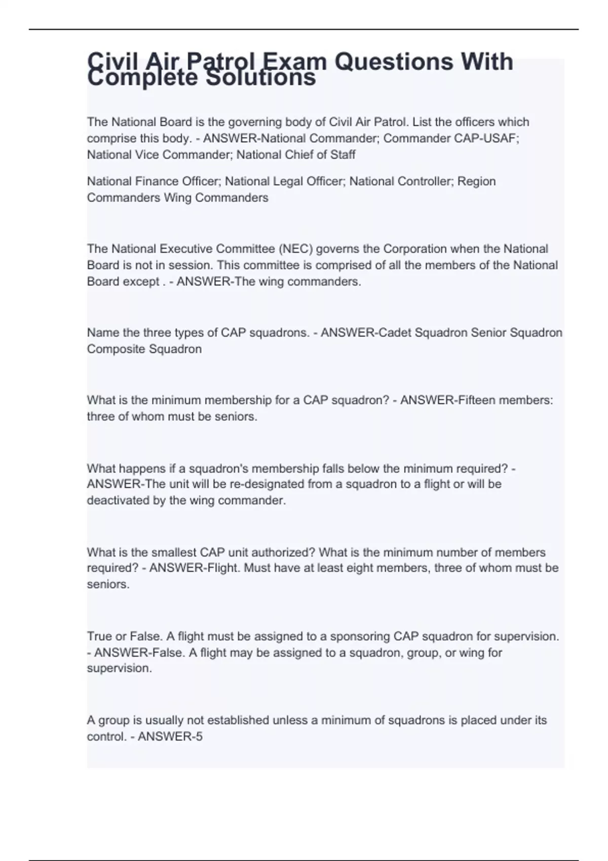 The National Board is the governing body of Civil Air Patrol. List the officers which comprise this body. - ANSWER-National Commander; Commander CAP-USAF; National Vice Commander; National Chief of Staff