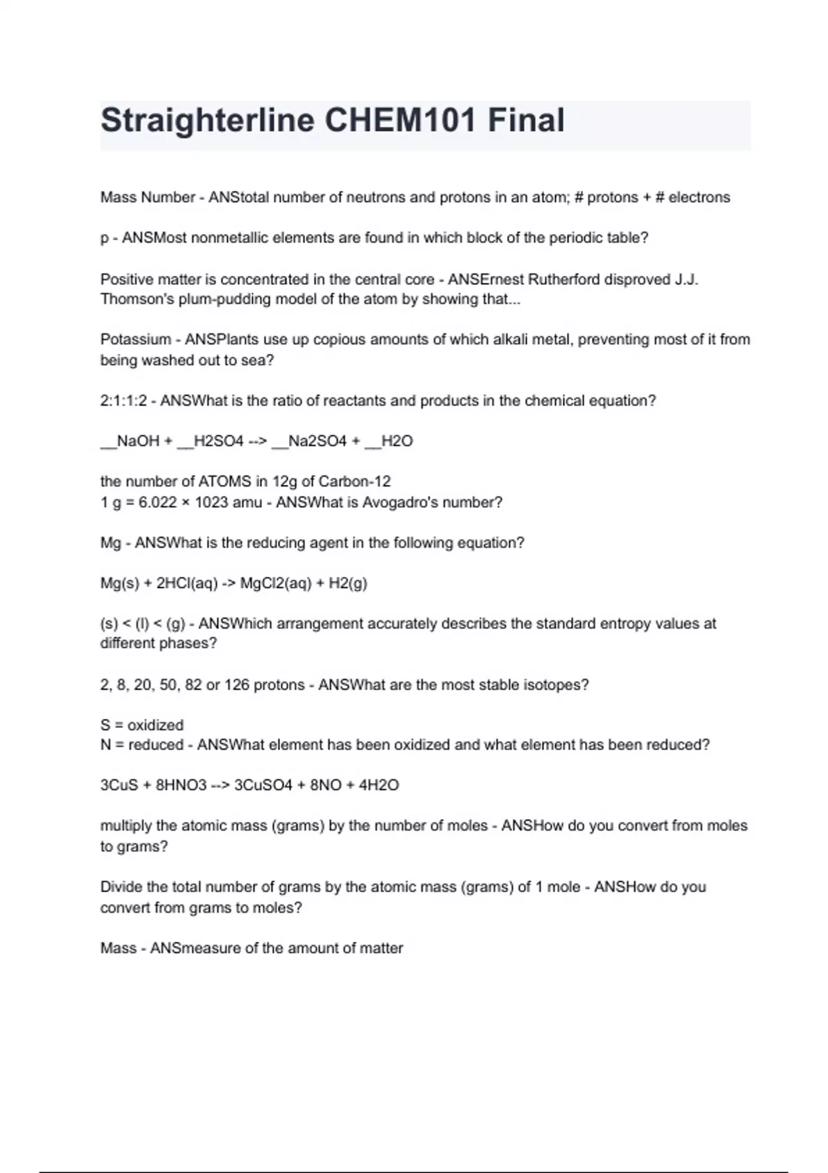 Straighterline CHEM101 Final NEWEST 2026/2027 ACTUAL EXAM COMPLETE QUESTIONS AND CORRECT DETAILED ANSWERS (VERIFIED ANSWERS) |ALREADY GRADED A+||BRAND NEW!!
