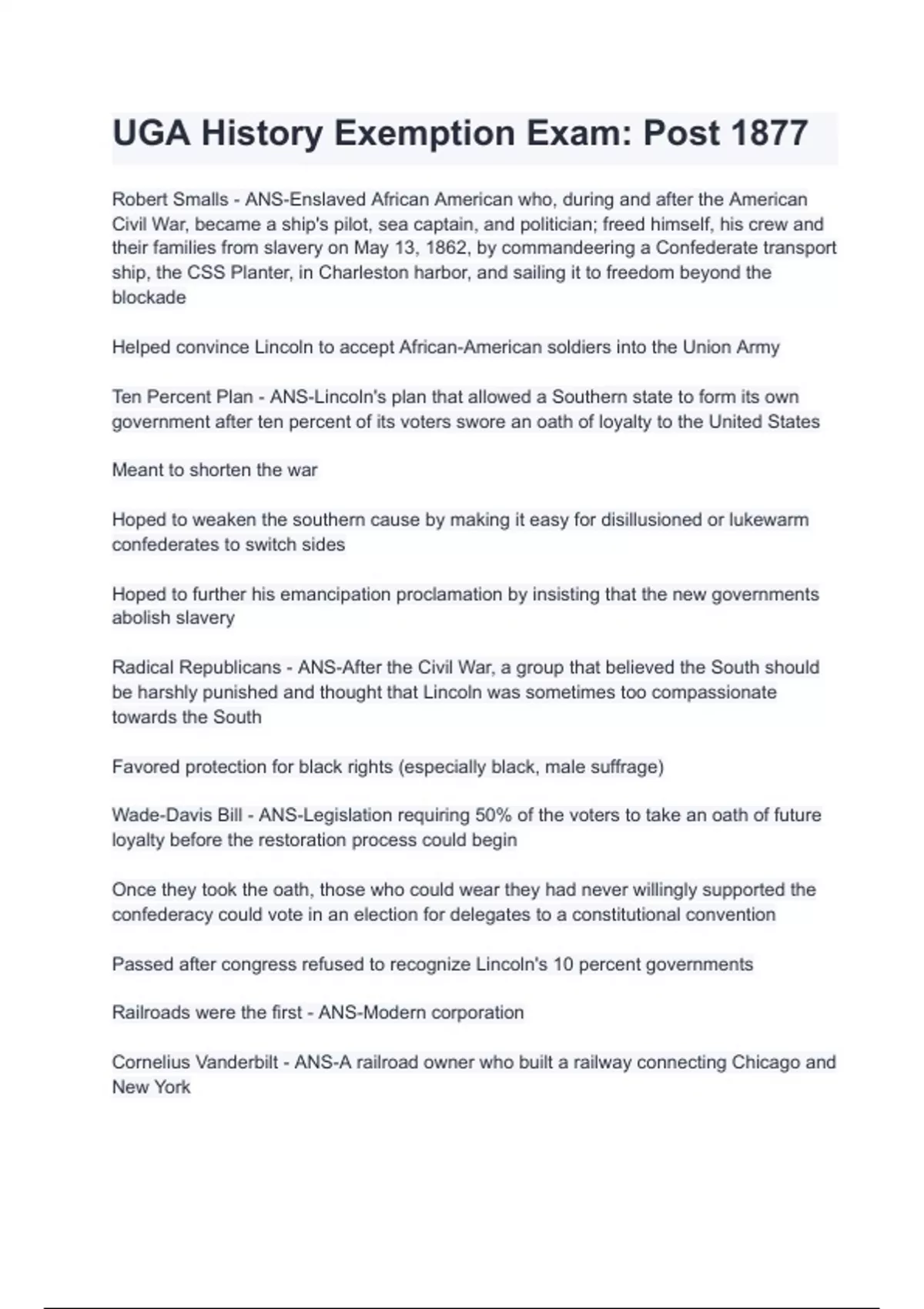 UGA History Exemption Exam_ Post 1877 With complete solution