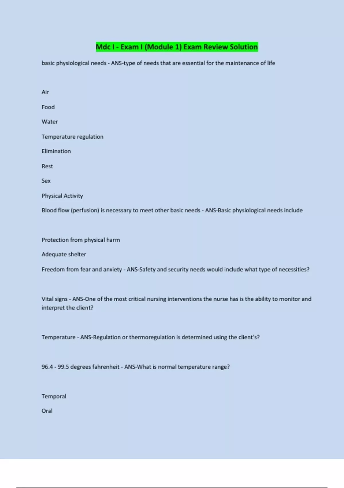 Mdc I - Exam I (Module 1) Exam Review Solution 100% PASS