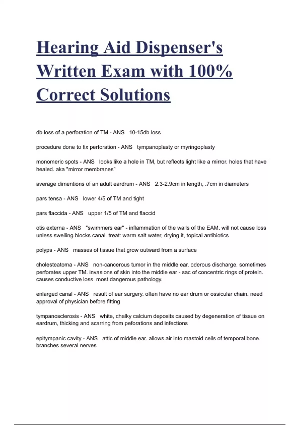 Hearing Aid Dispenser's Written Exam with 100% Correct Solutions