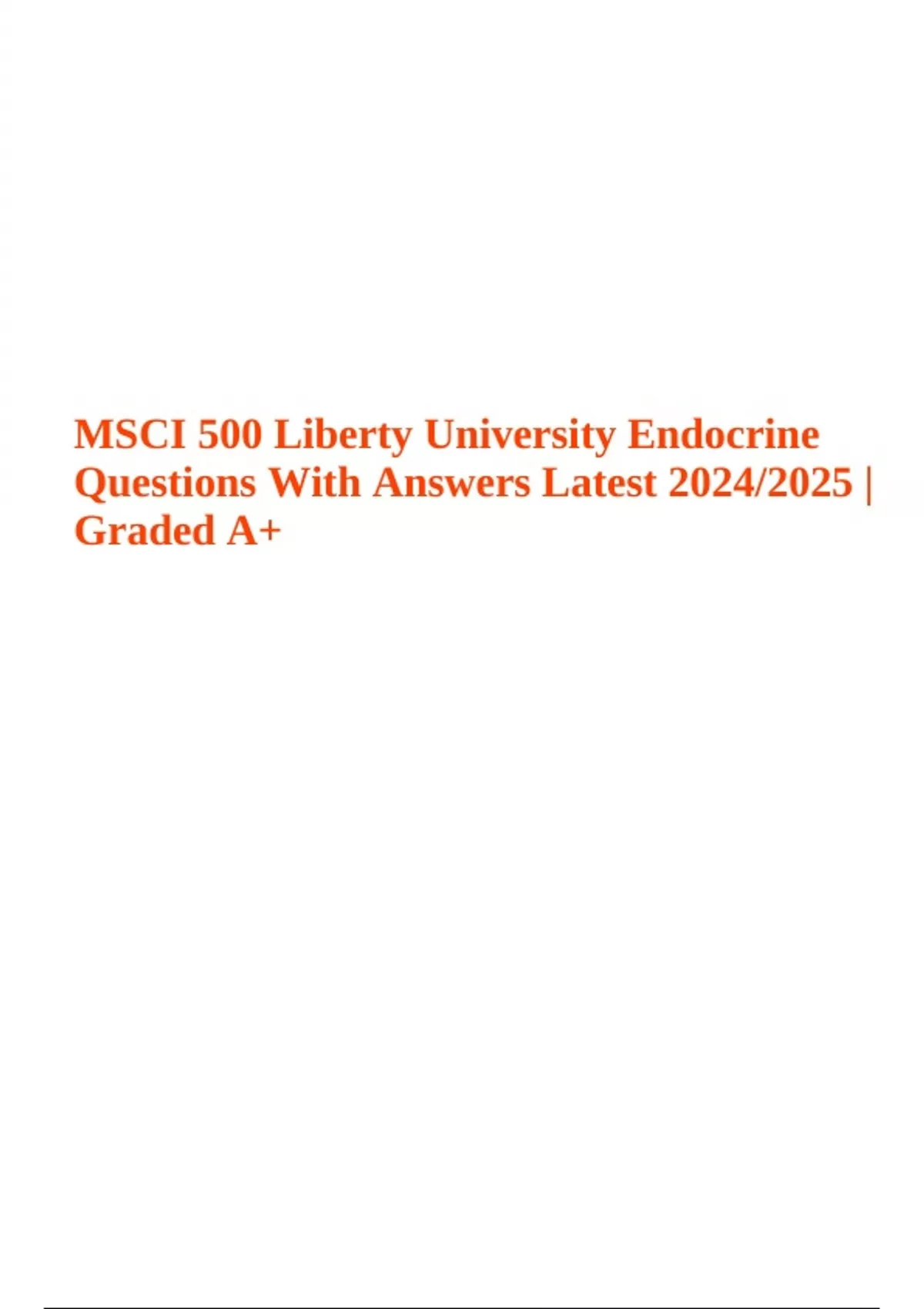 MSCI 500 Endocrine Questions With Answers Latest 2024/2025 (Graded A+) Liberty University