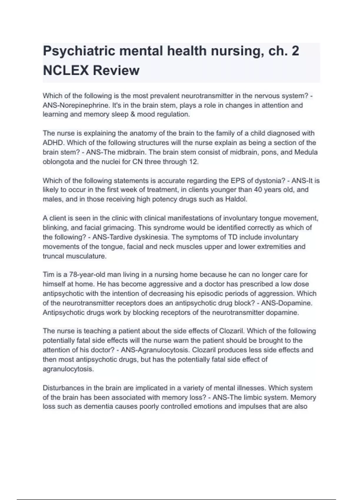 psychiatric mental health nursing ch 2 nclex rev