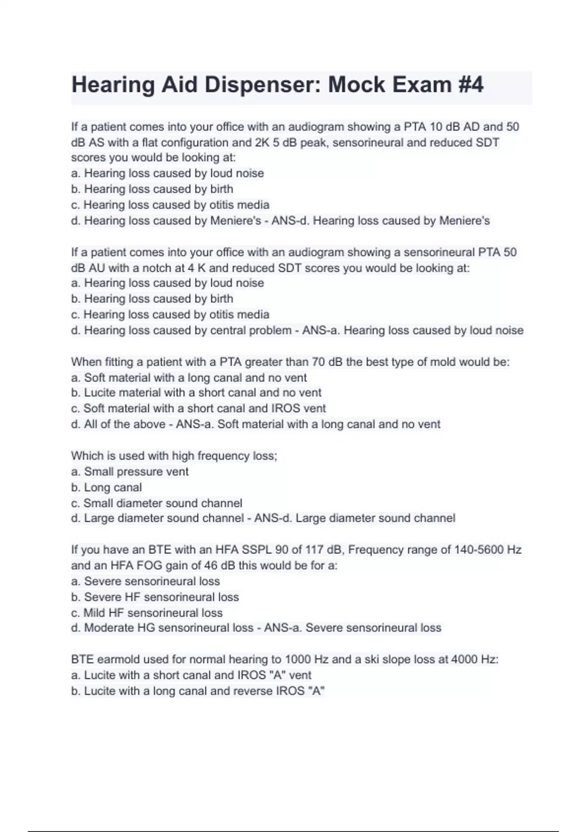 Hearing Aid Dispenser_ Mock Exam #4 With complete solution