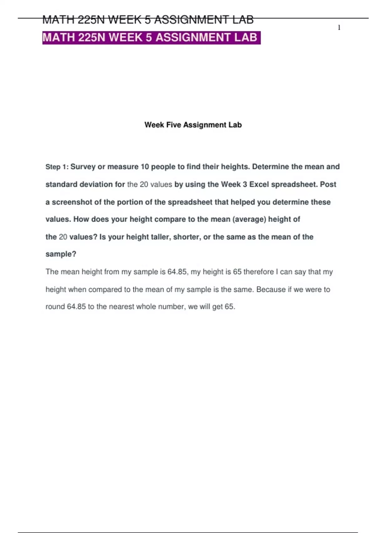 MATH 225N WEEK 5 ASSIGNMENT LAB final