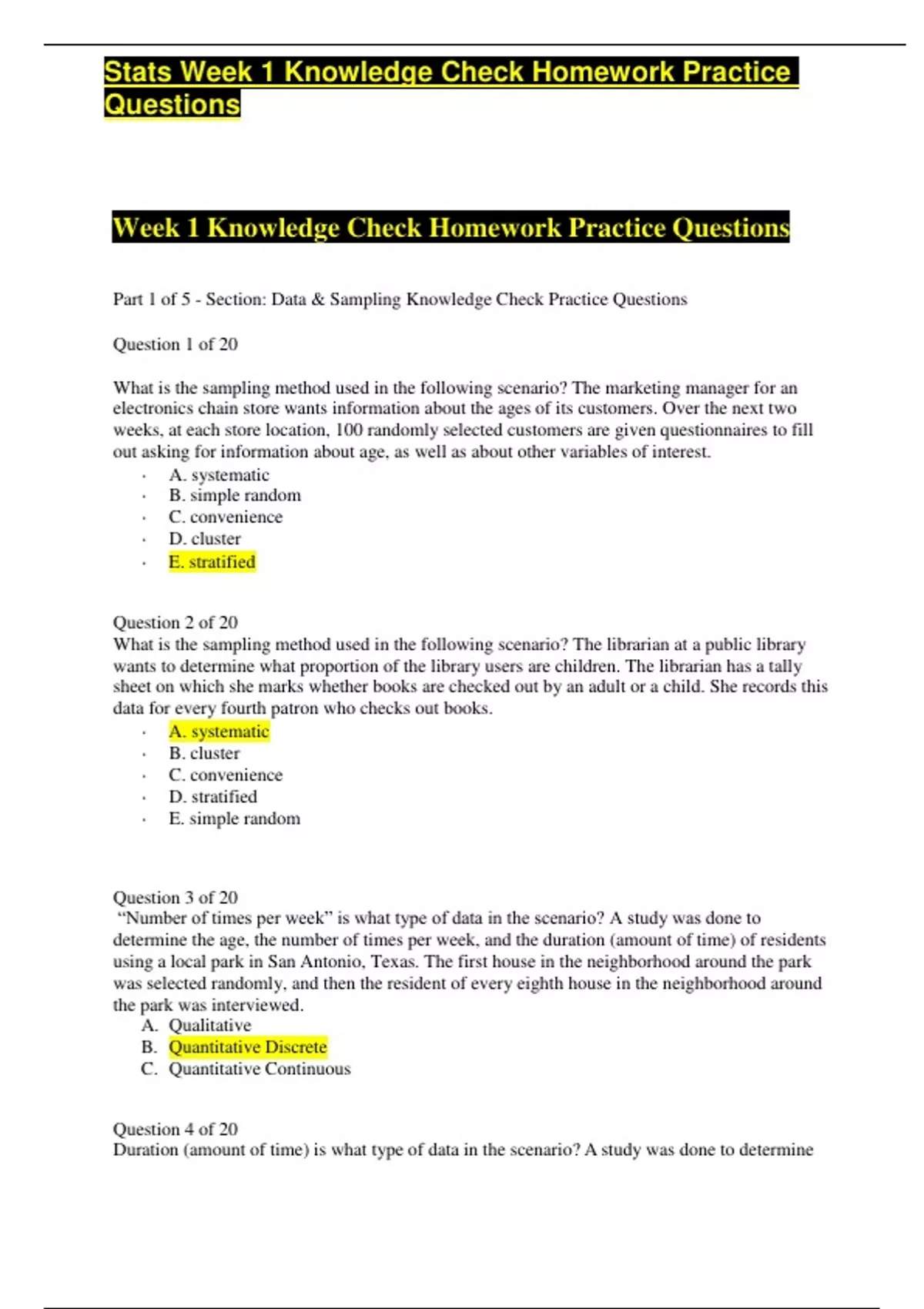 Stats Week 1 Knowledge Check Homework Practice Questions