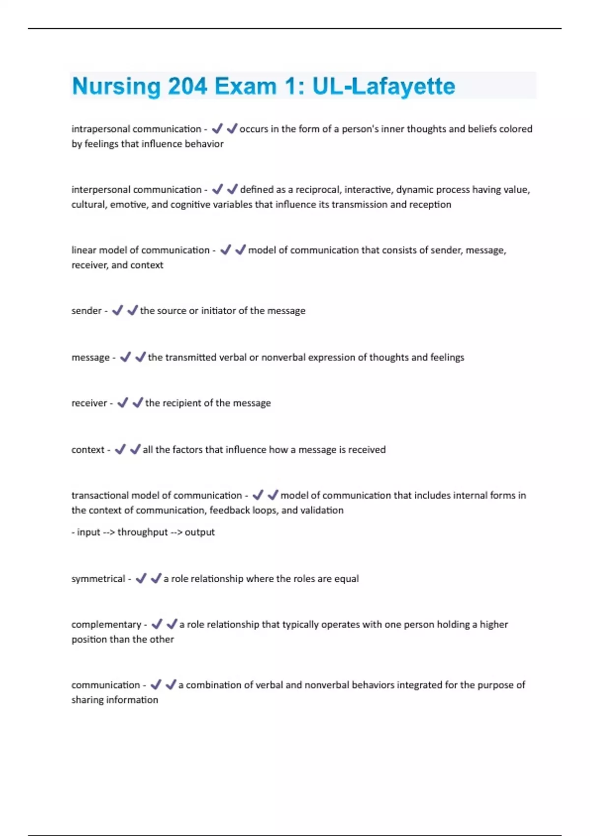 Nursing 204 Exam 1: UL-Lafayette Questions & Answers Already Graded A+