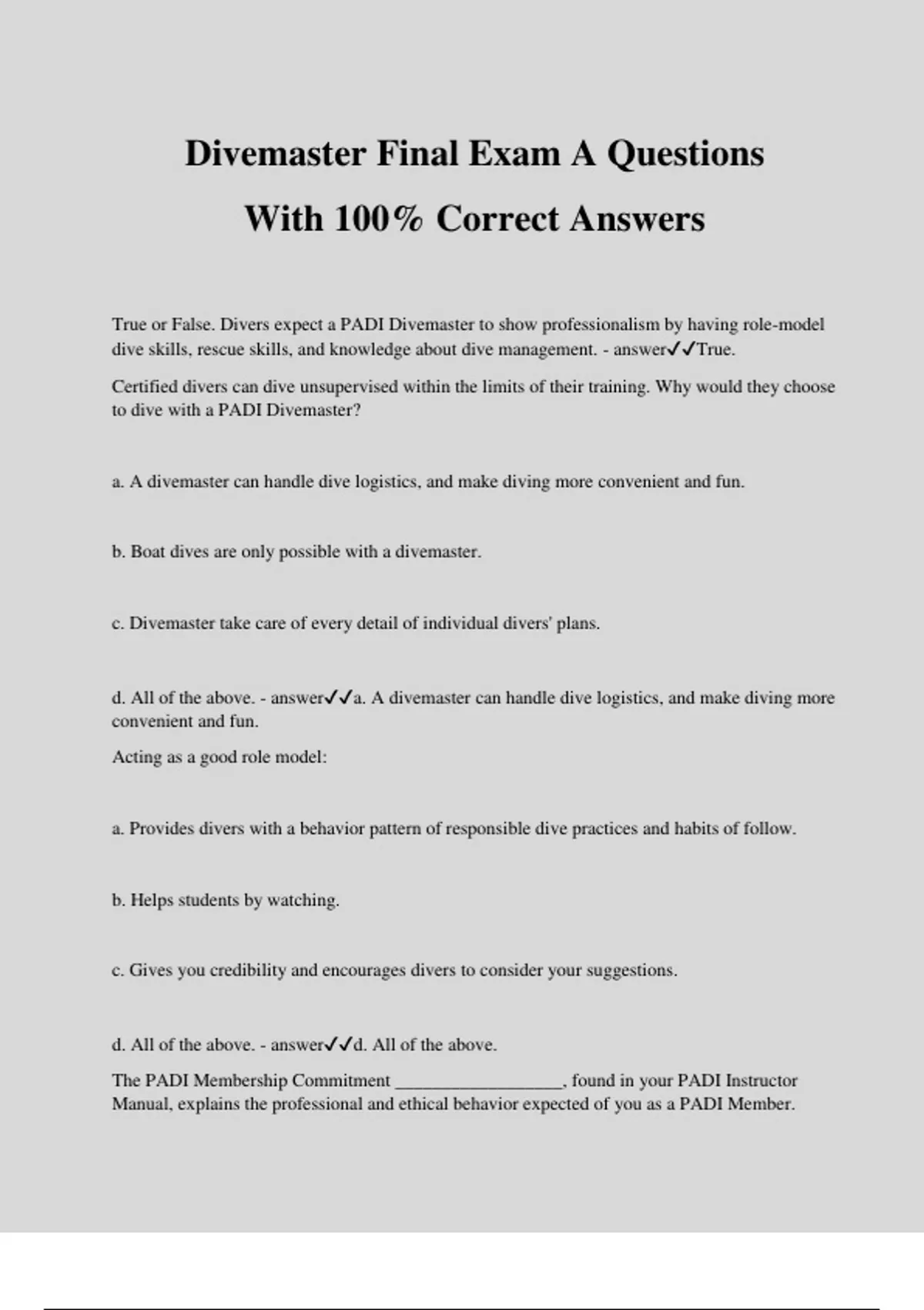 Divemaster Final Exam A Questions With 100% Correct Answers