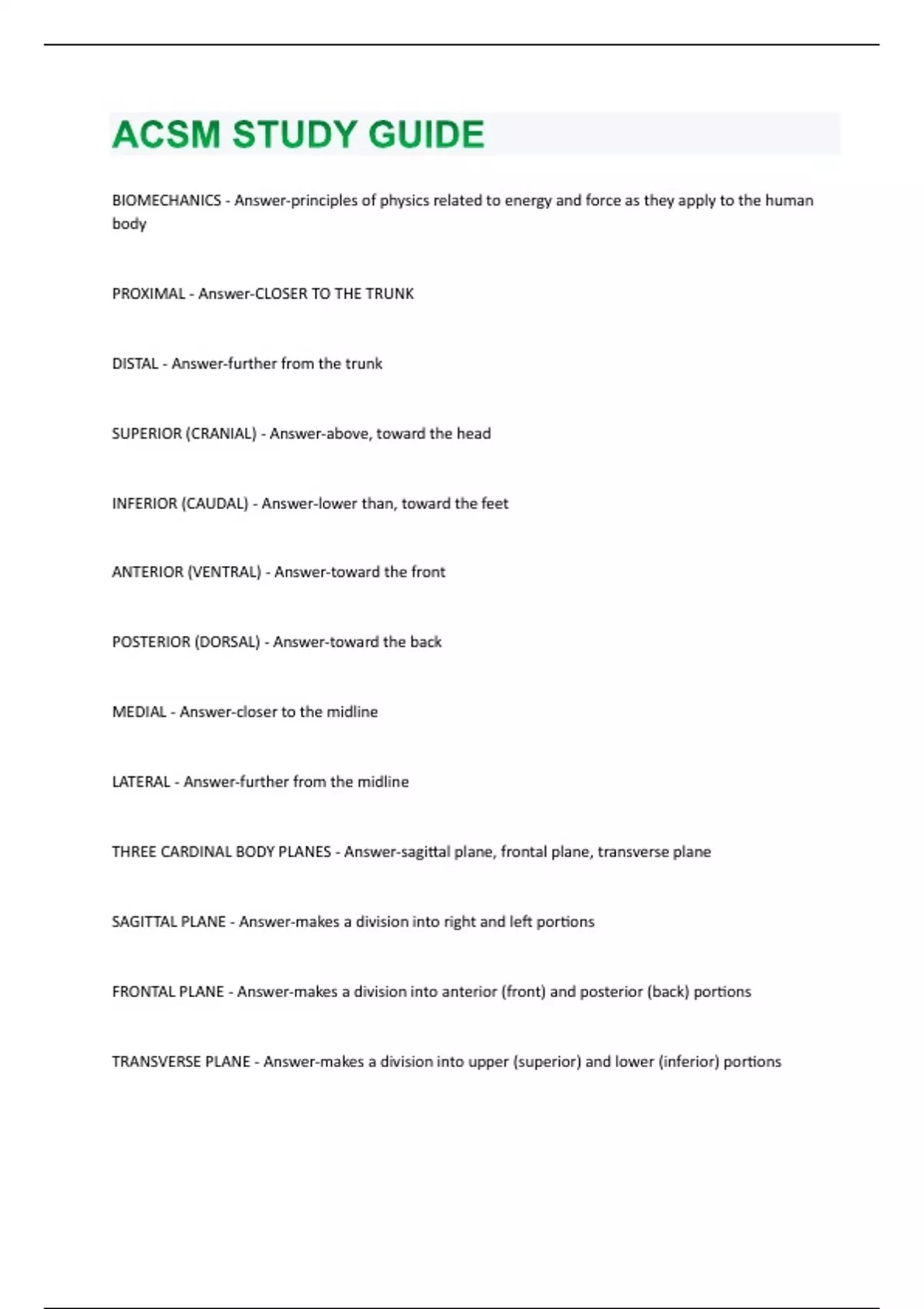 ACSM STUDY GUIDE (QUESTIONS & ANSWERS) GRADED A+