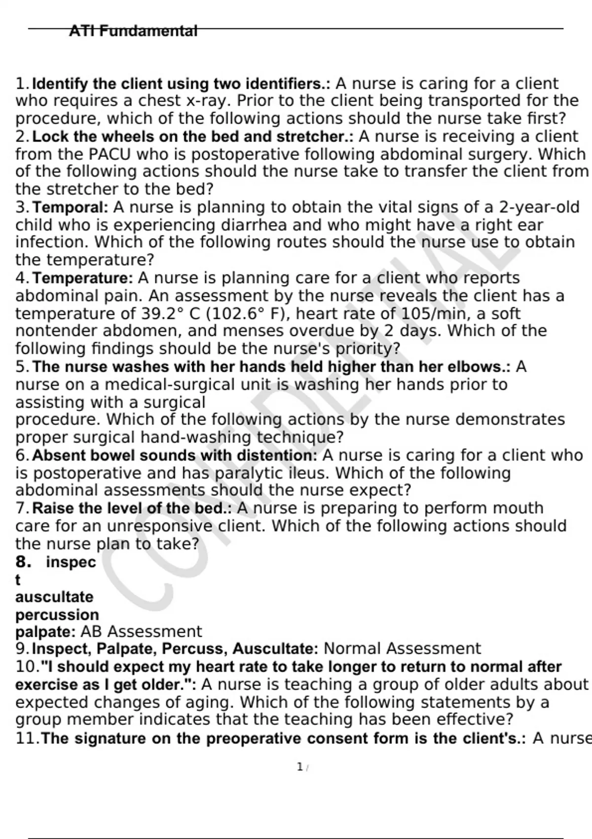 1. Identify the client using two identifiers.: A nurse is caring for a client