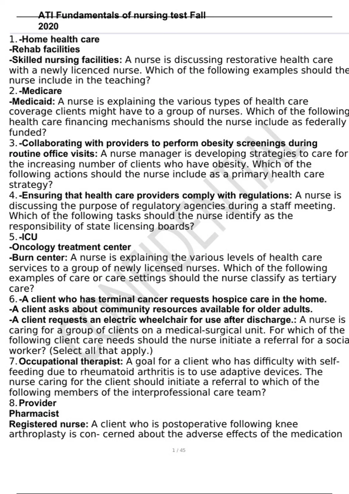, ATI Fundamentals of nursing test Fall