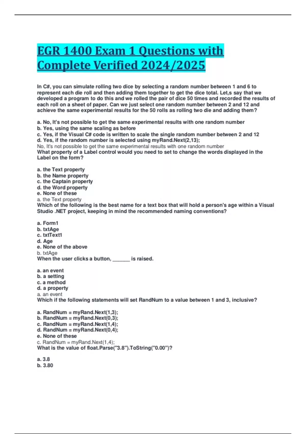 EGR 1400 Exam 1 Questions with Complete Verified 2024/2025