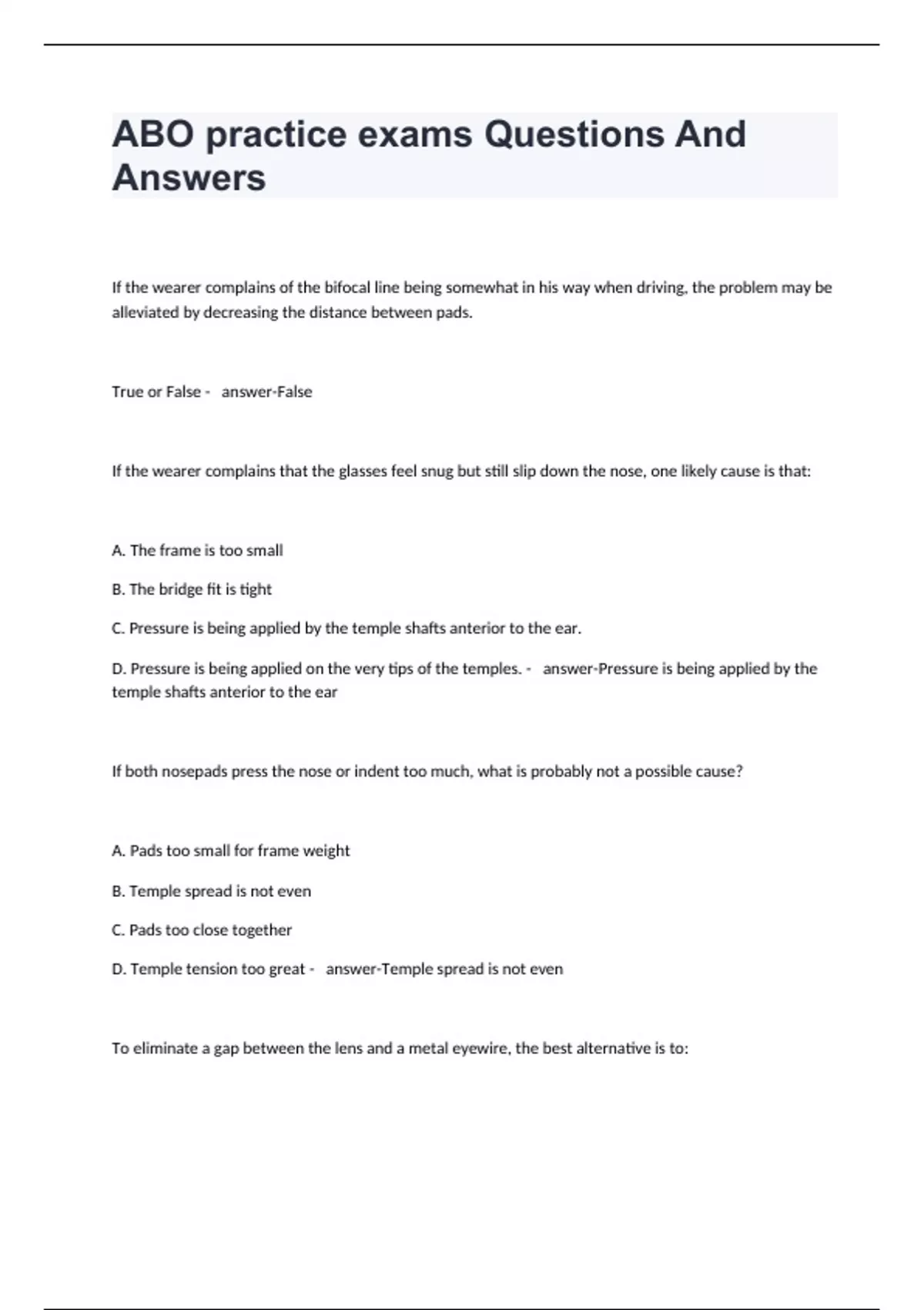 ABO practice exams Questions And Answers