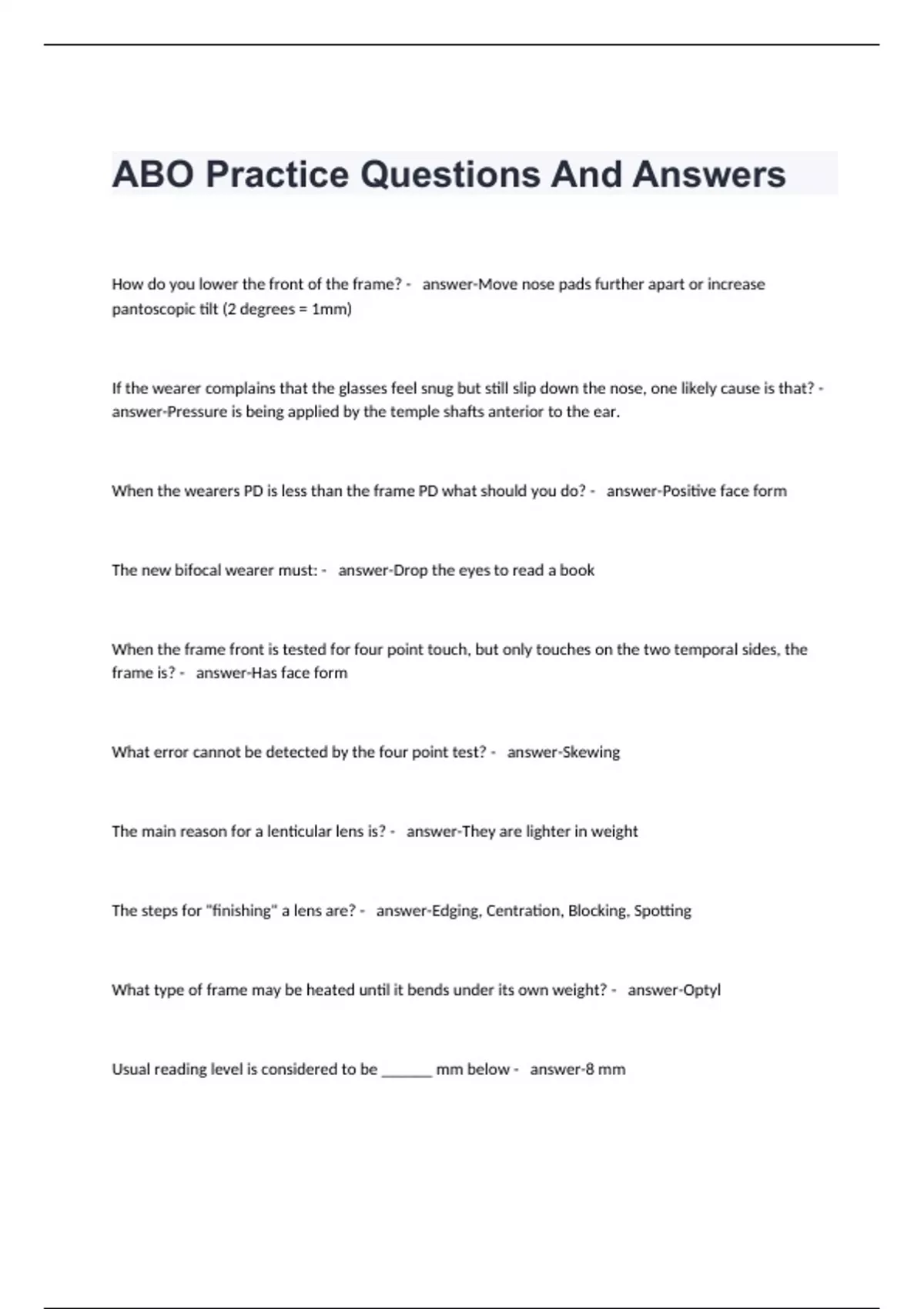 ABO Practice Questions And Answers