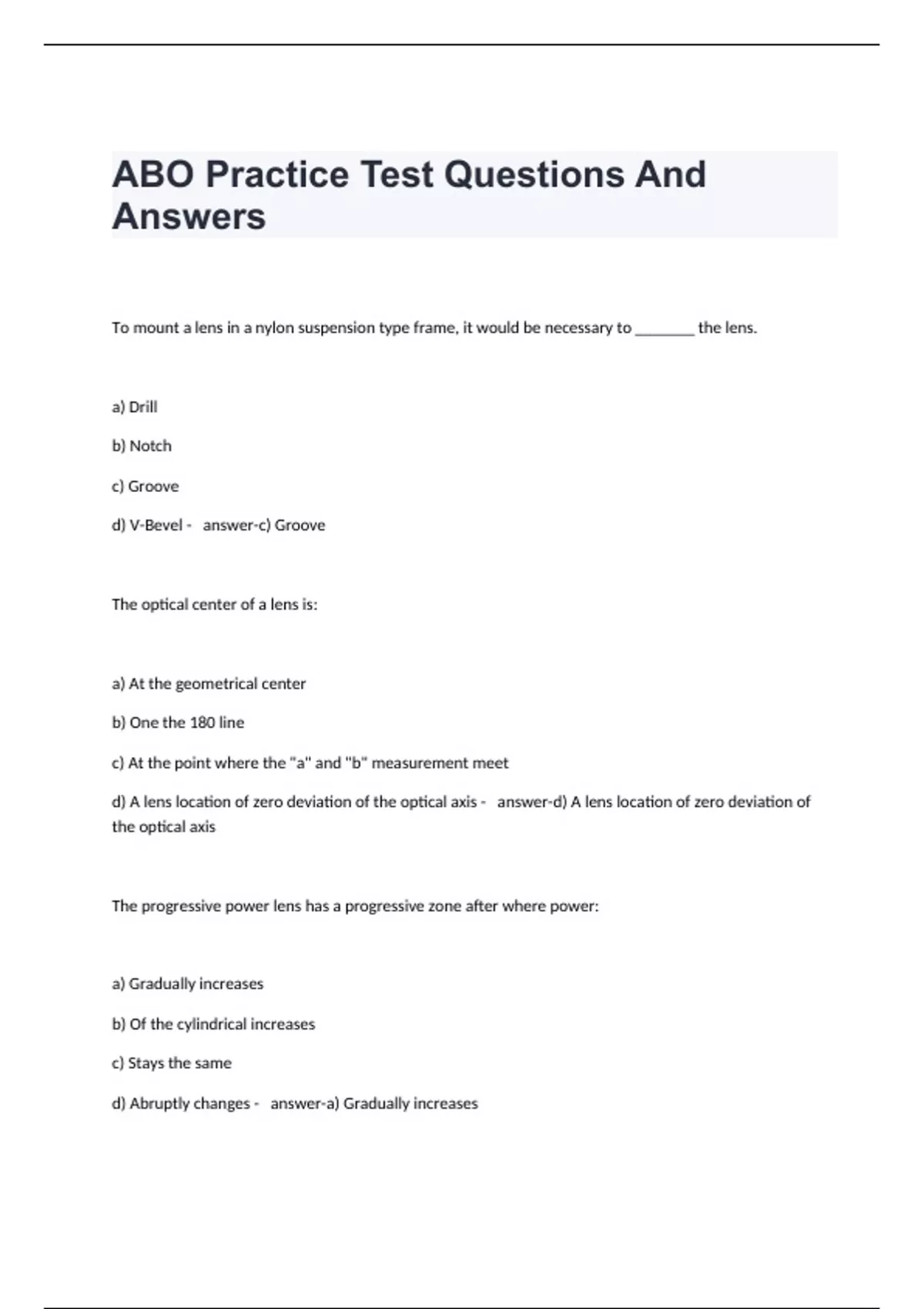 ABO Practice Test Questions And Answers