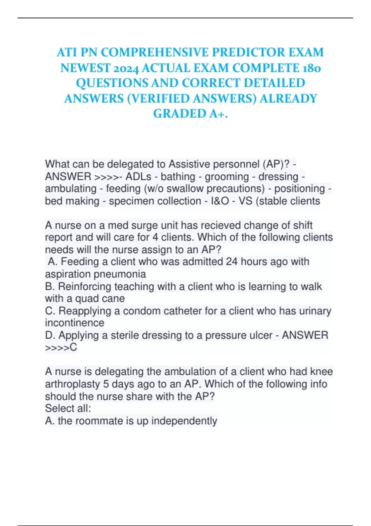 ATI PN COMPREHENSIVE PREDICTOR EXAM NEWEST 2024 ACTUAL EXAM COMPLETE 180 QUESTIONS AND CORRECT DETAILED ANSWERS (VERIFIED ANSWERS) ALREADY GRADED A+.ATI PN COMPREHENSIVE PREDICTOR EXAM NEWEST 2024 ACTUAL EXAM COMPLETE 180 QUESTIONS AND CORRECT DETAILED ANSWERS (VERIFIED ANSWERS) ALREADY GRADED A+.ATI PN COMPREHENSIVE PREDICTOR EXAM NEWEST 2024 ACTUAL EXAM COMPLETE 180 QUESTIONS AND CORRECT DETAILED ANSWERS (VERIFIED ANSWERS) ALREADY GRADED A+.ATI PN COMPREHENSIVE PREDICTOR EXAM NEWEST 2024 ACTUAL EXAM COMPLETE 180 QUESTIONS AND CORRECT DETAILED ANSWERS (VERIFIED ANSWERS) ALREADY GRADED A+.