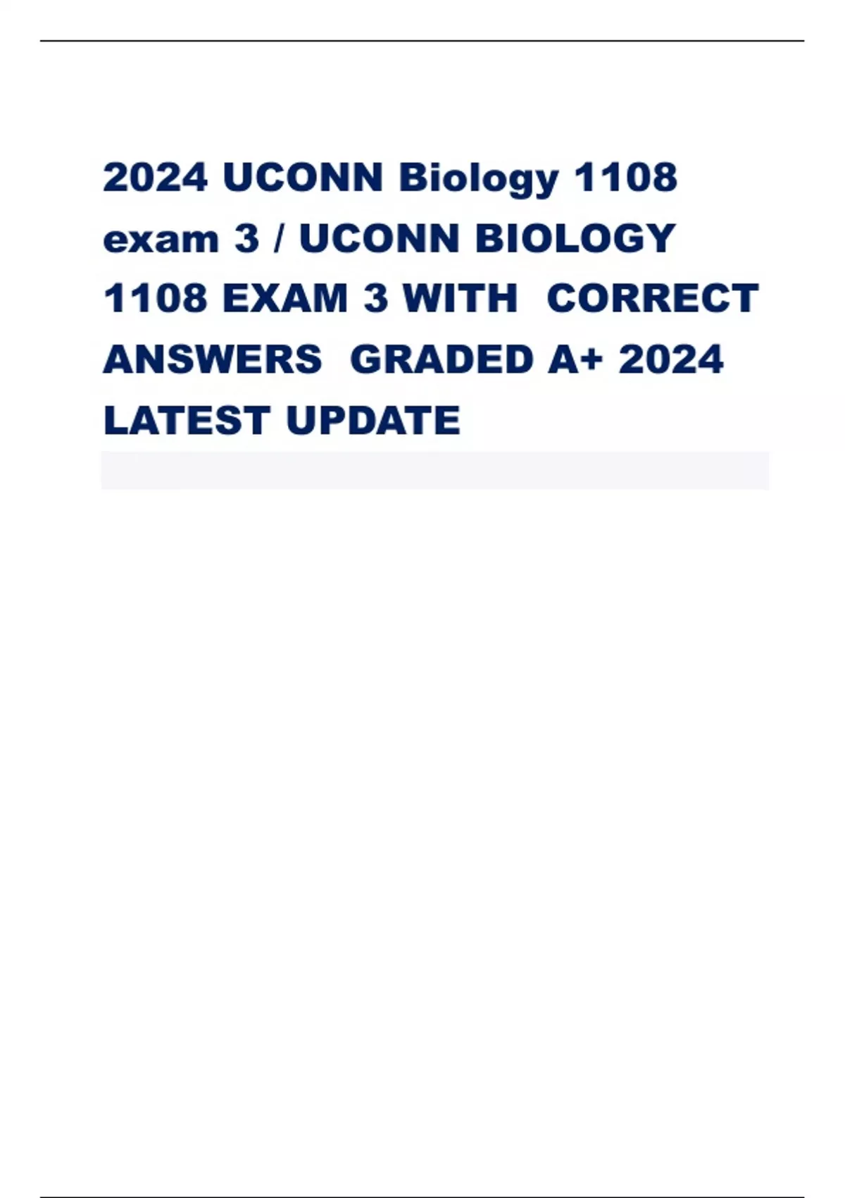 2024 UCONN Biology 1108 exam 3 / UCONN BIOLOGY 1108 EXAM 3 WITH CORRECT ANSWERS GRADED A+ 2024 LATEST UPDATE