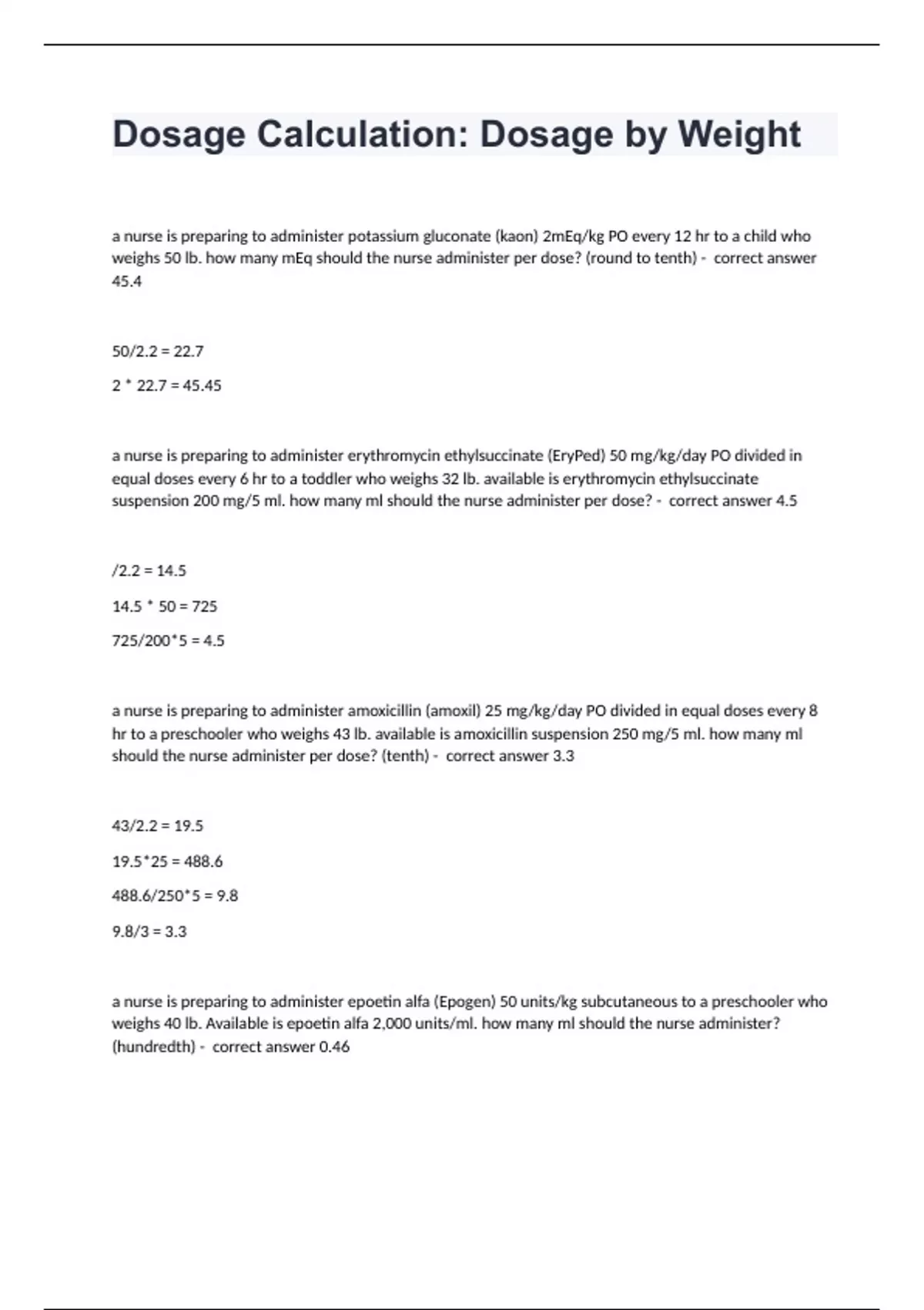 Dosage Calculation Dosage by Weight questions and answers already certified 2024