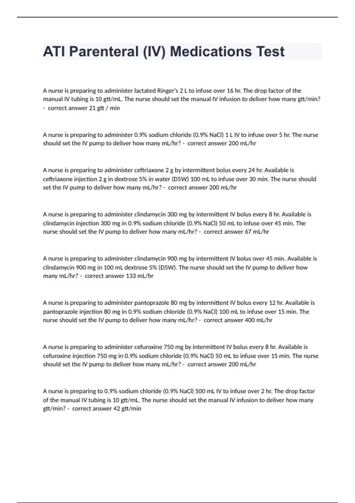 ati parenteral iv medications test questions and