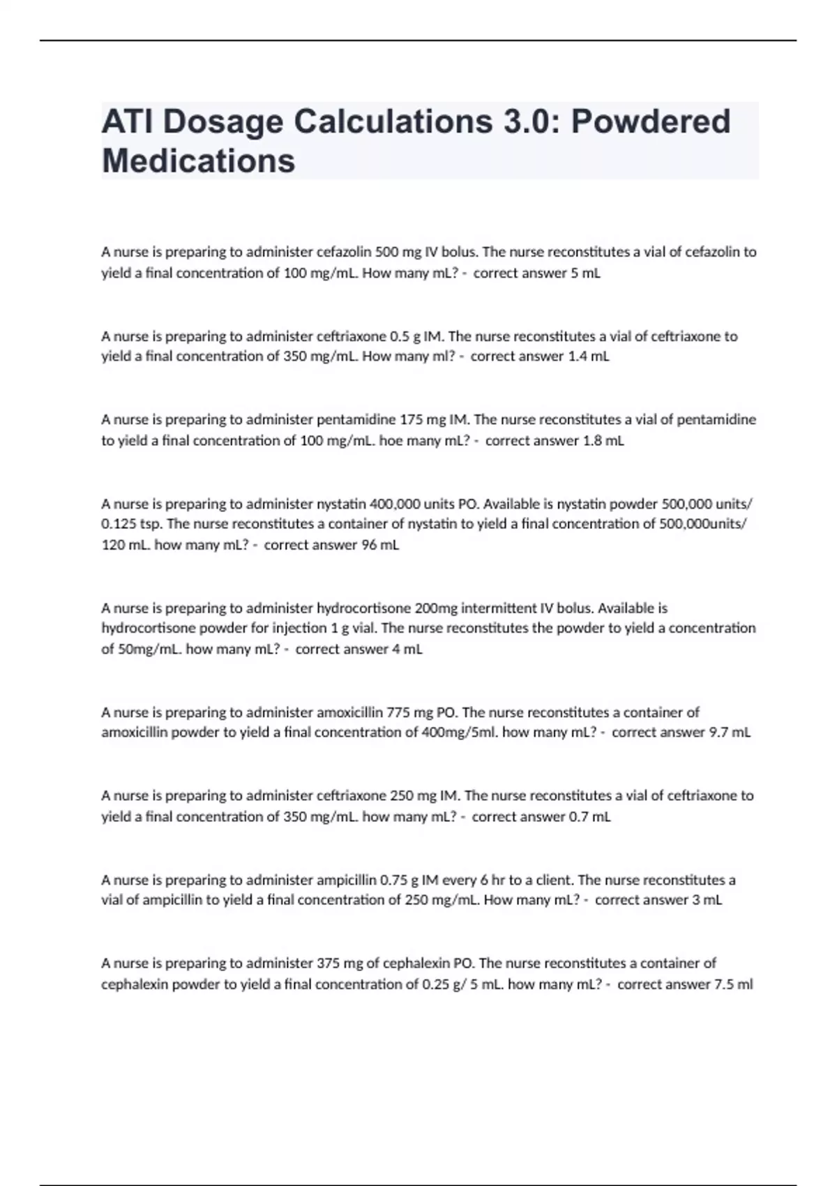 ATI Dosage Calculations 3.0 Powdered Medications questions and answers rated A+ 2024