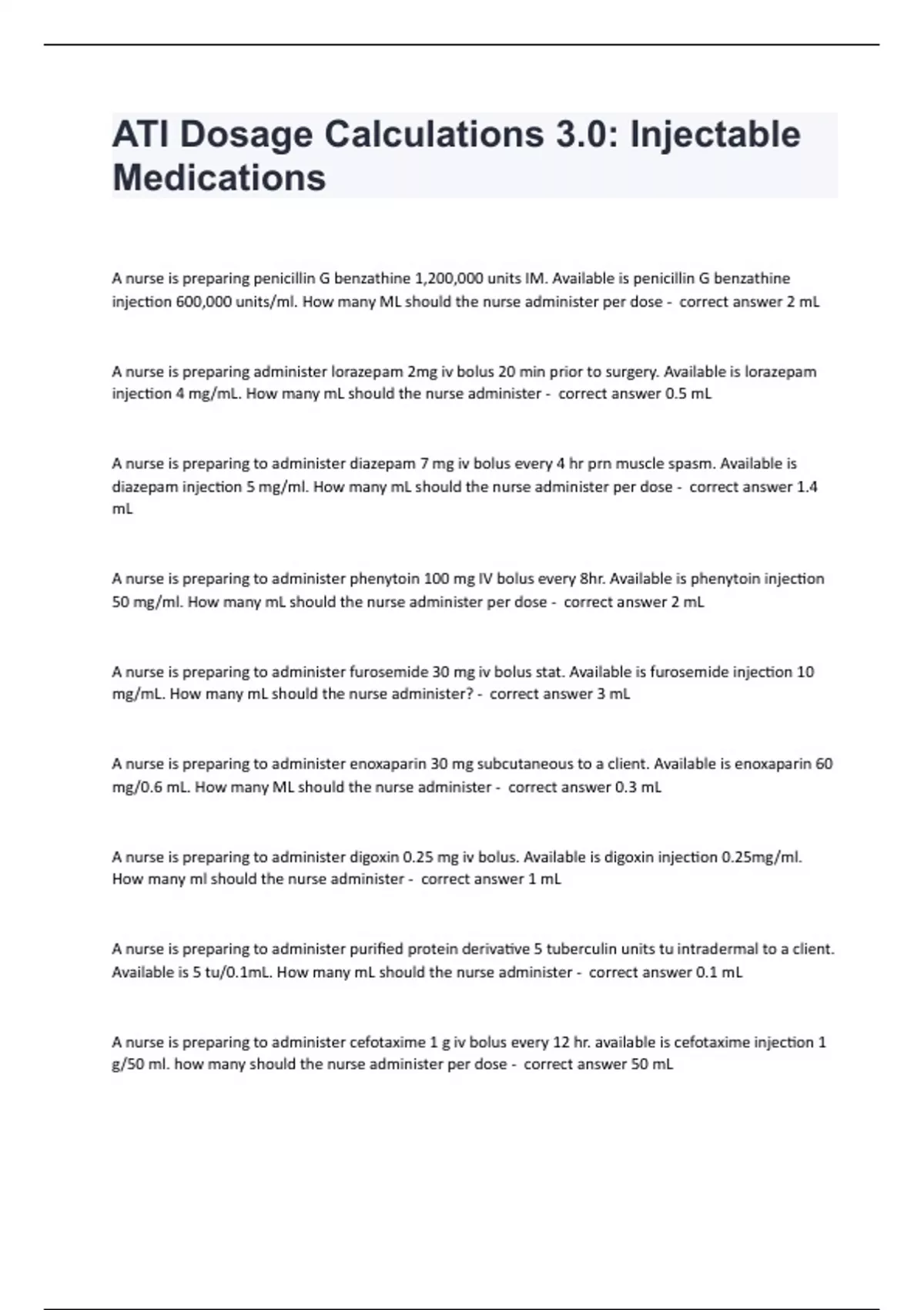 ATI Dosage Calculations 3.0 Injectable Medications questions with complete solutions 2024