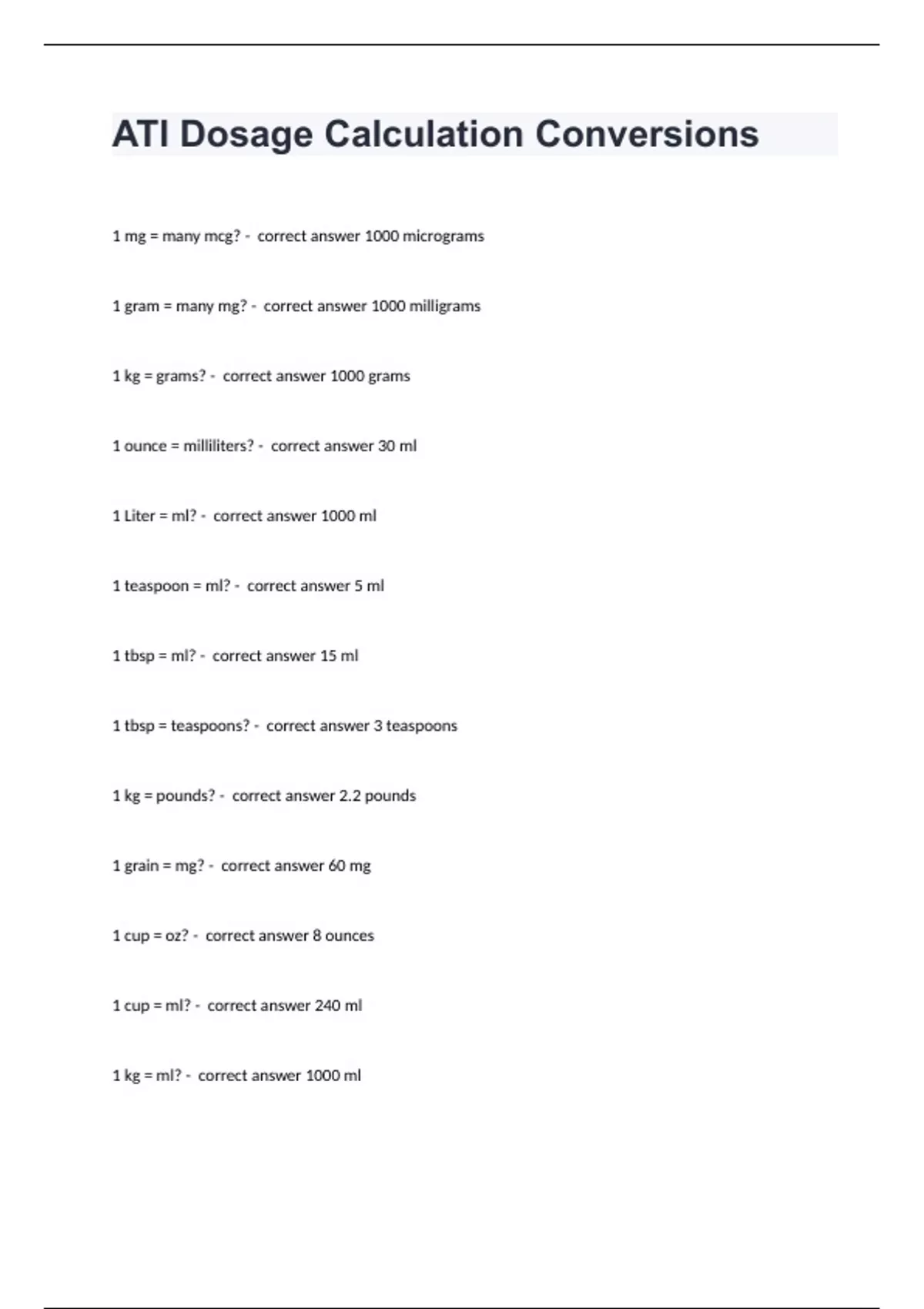 ATI Dosage Calculation Conversions questions and answers verified 2024