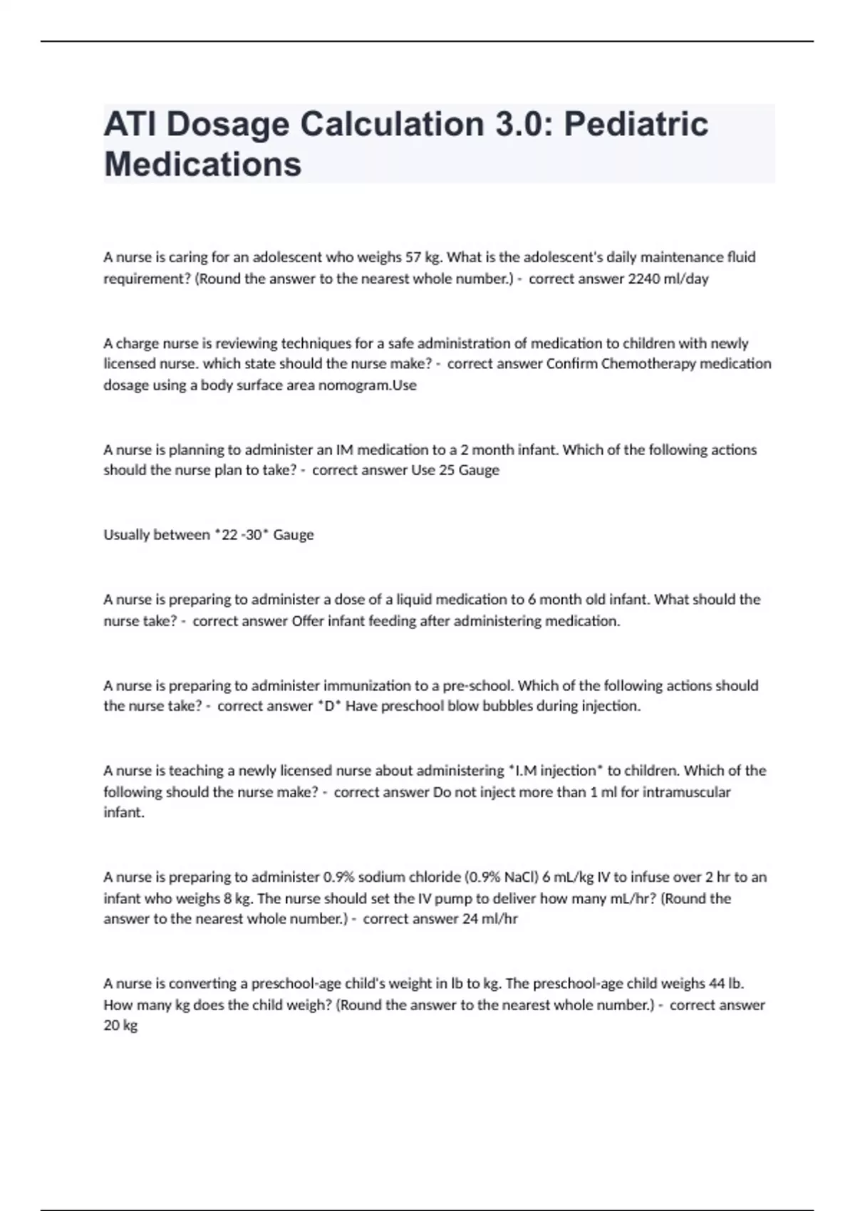ATI Dosage Calculation 3.0 Pediatric Medications questions and answers alread y passed 2024
