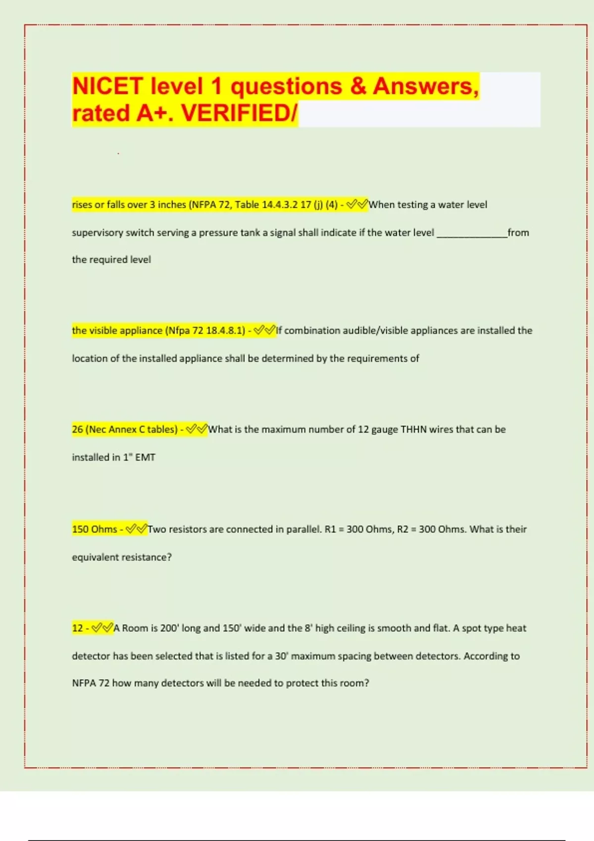 NICET level 1 questions & Answers, rated A+. VERIFIED/[LATEST EXAM UPDATES]