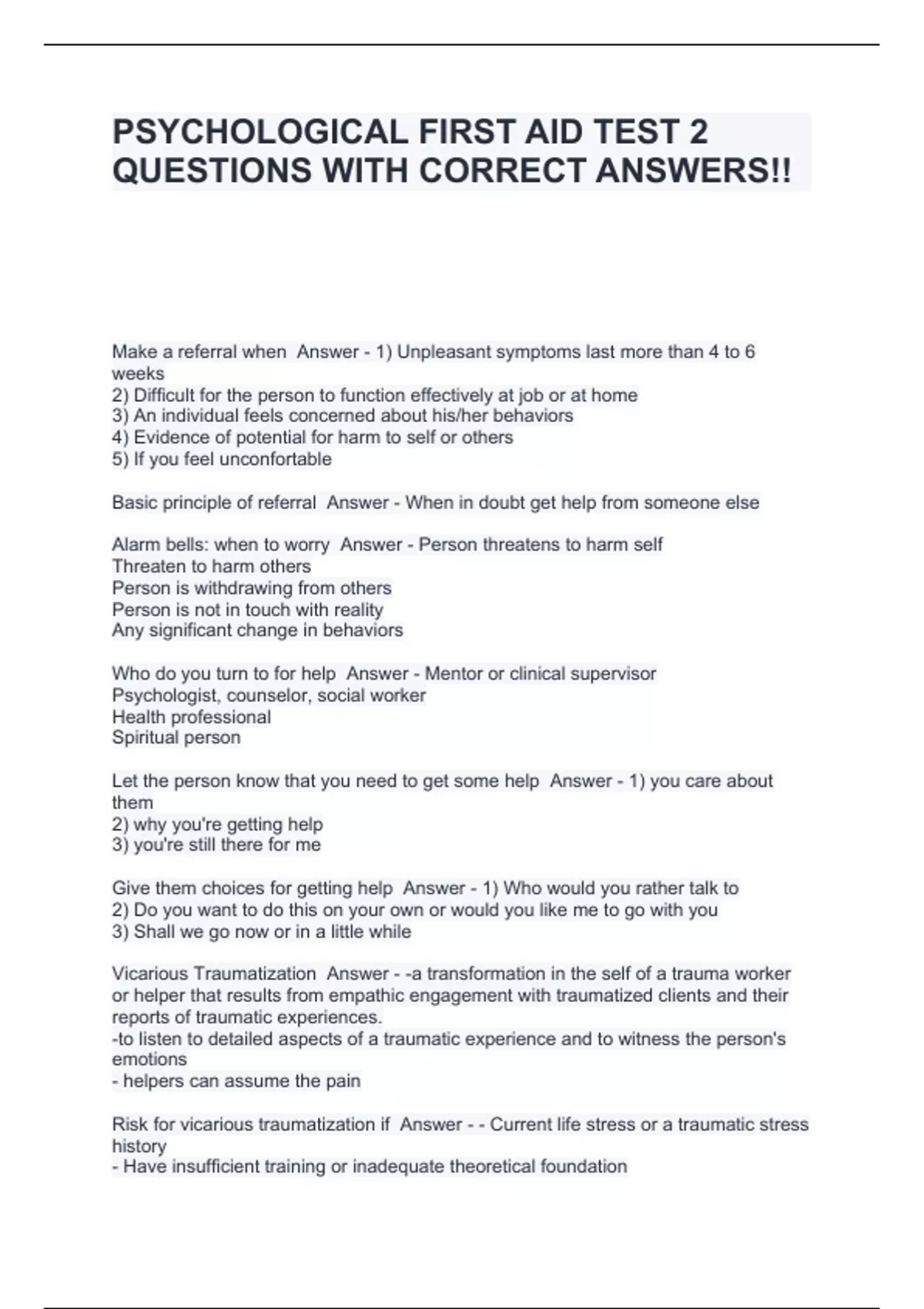 PSYCHOLOGICAL FIRST AID TEST 2 QUESTIONS WITH CORRECT ANSWERS!!