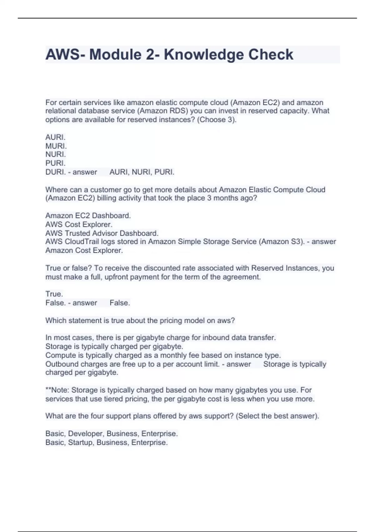 AWS- Module 2- Knowledge Check Questions and Answers |Graded A