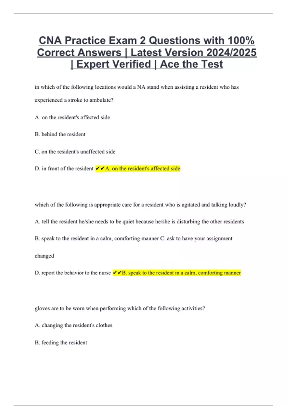 CNA Practice Exam 2 Questions with 100% Correct Answers | Latest Version 2024/2025 | Expert Verified | Ace the Test