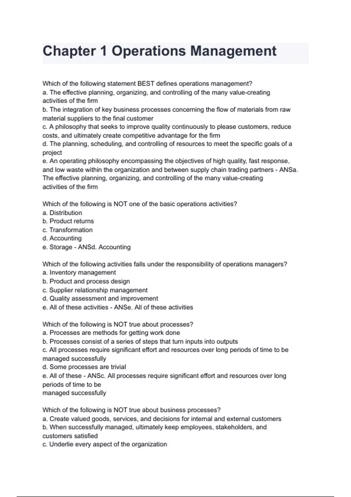 Chapter 1 Operations Management