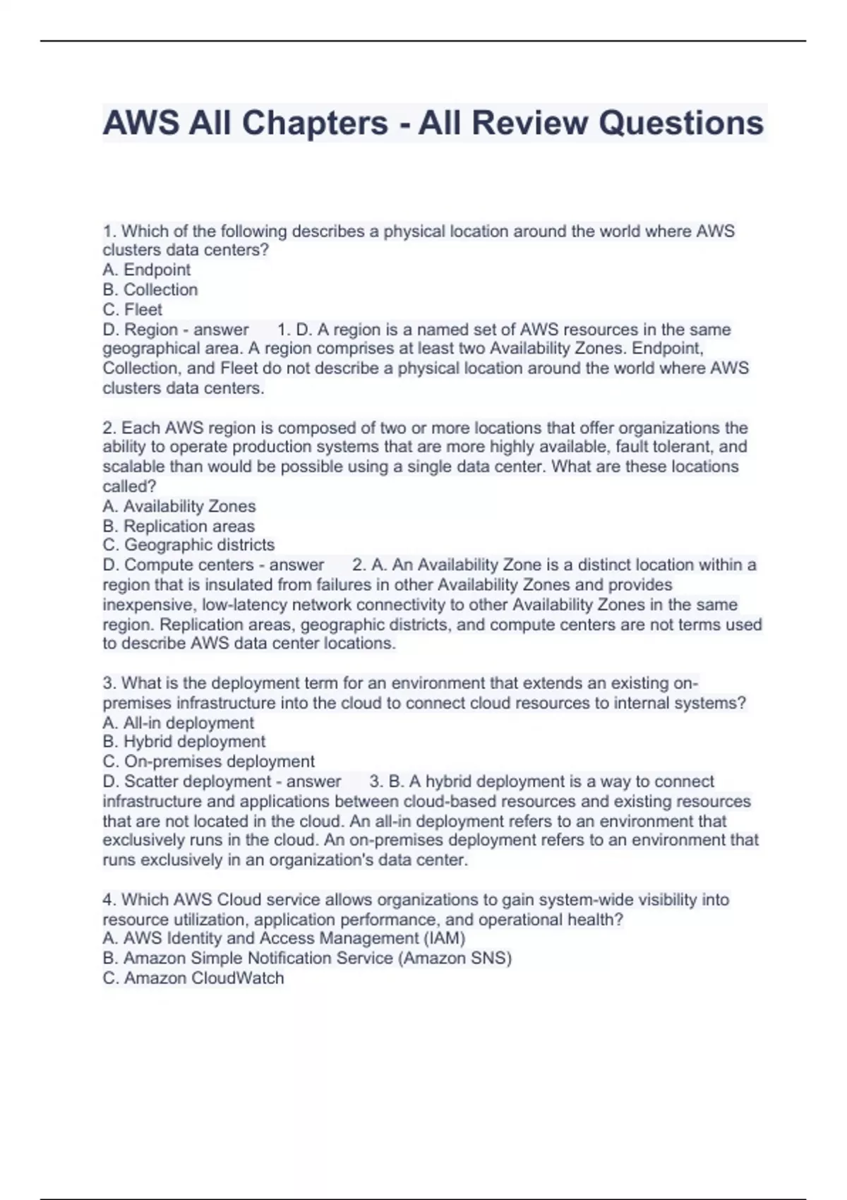 AWS All Chapters - All Review Questions and Answers 2024