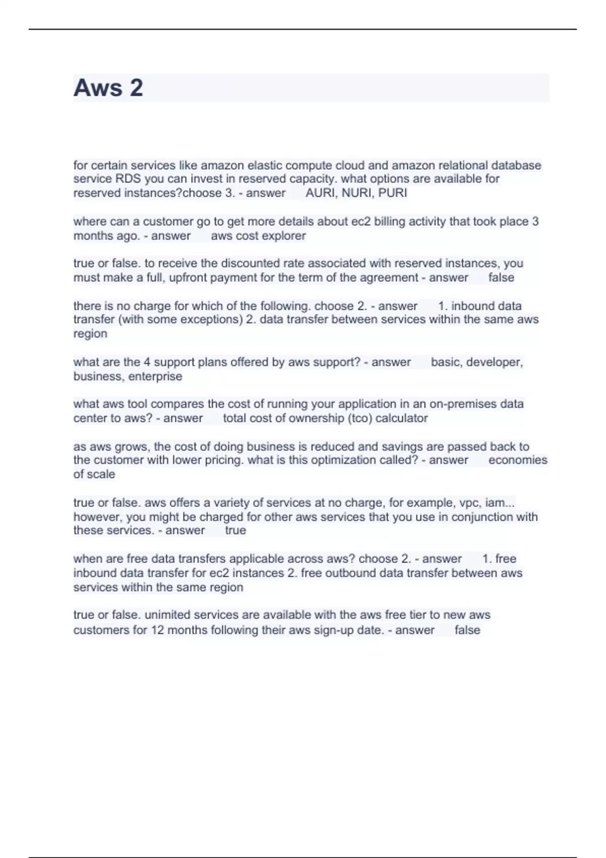Aws 2,Questions and Answers 100% Solved