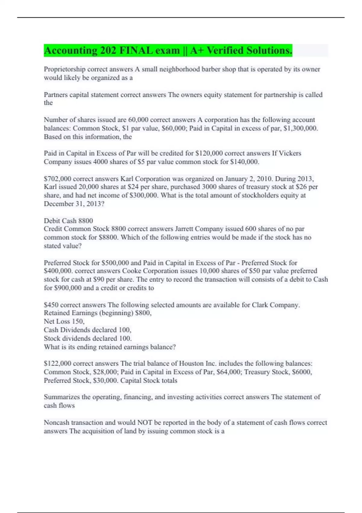 Accounting 202 FINAL exam || A+ Verified Solutions.