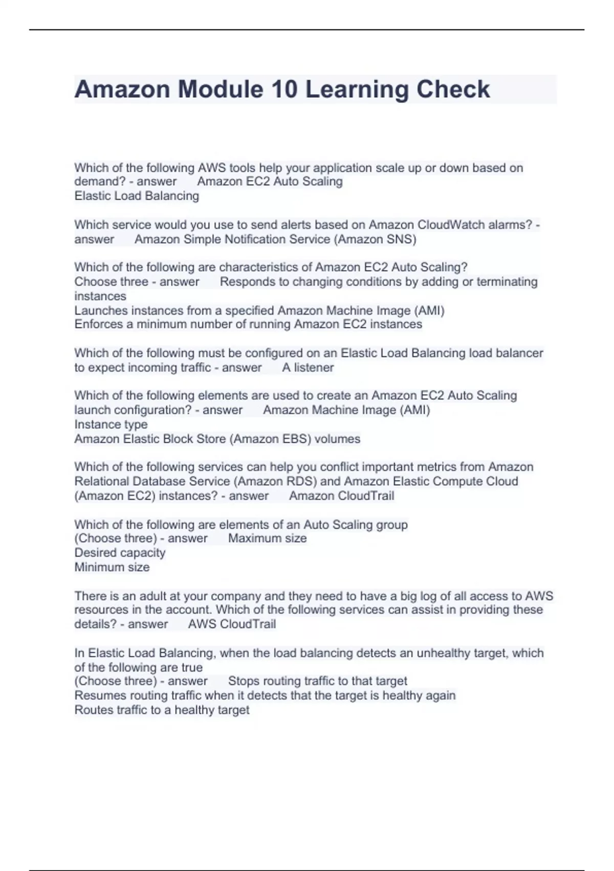 Amazon Module 10 Learning Check Questions and Answers 100%