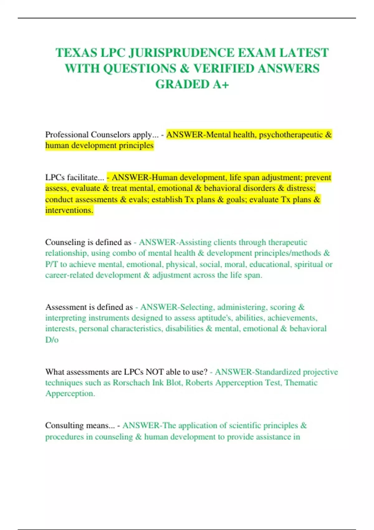 TEXAS LPC JURISPRUDENCE EXAM LATEST