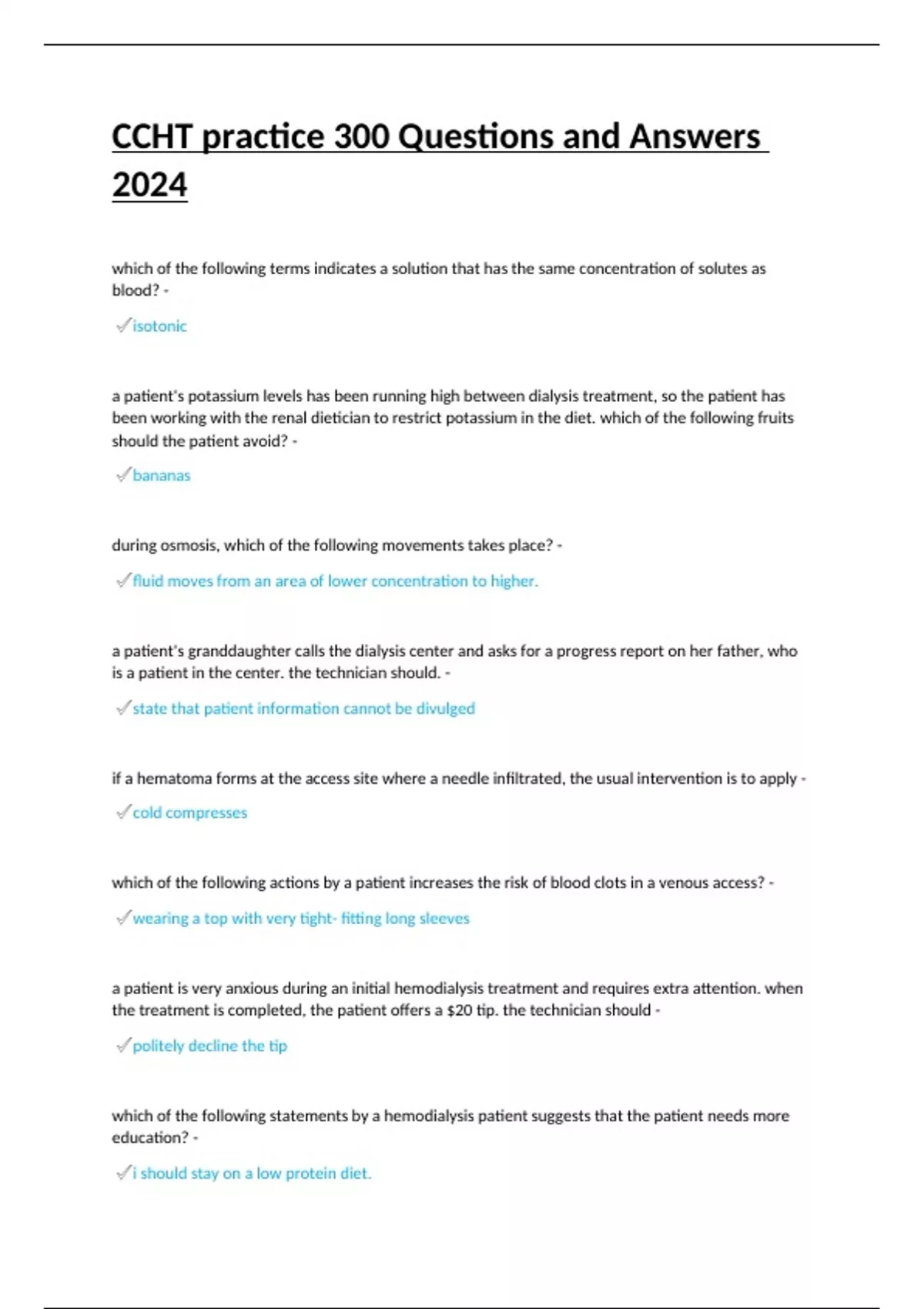CCHT practice 300 Questions and Answers 2024.