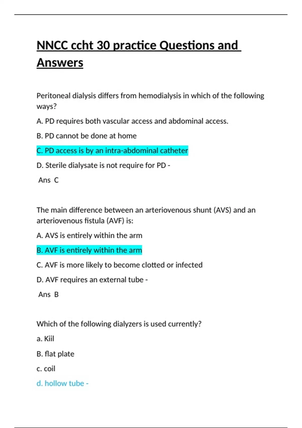 nncc ccht 30 practice questions and answers