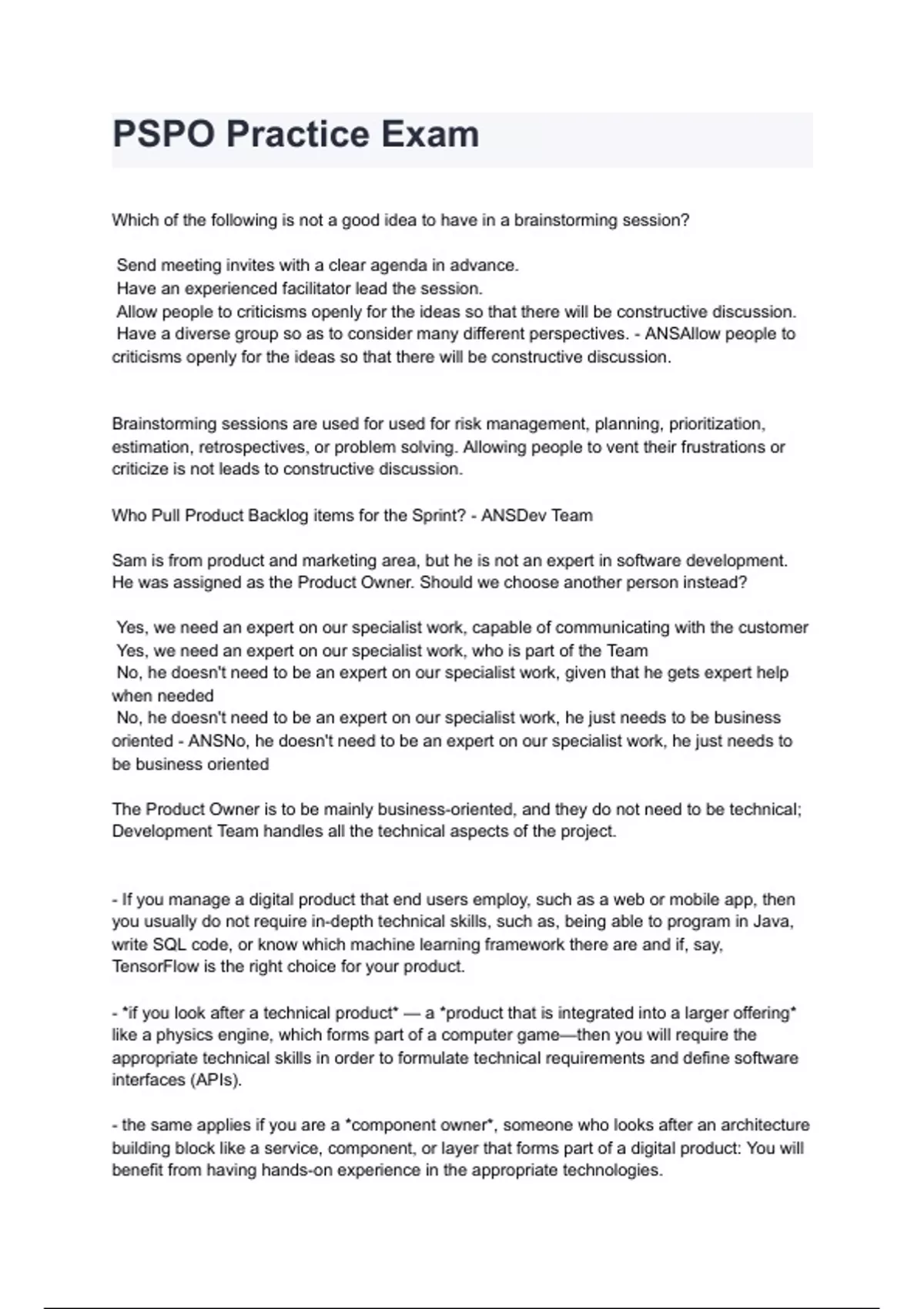 PSPO Practice Exam questions and answers A+ score assured 2024/2025