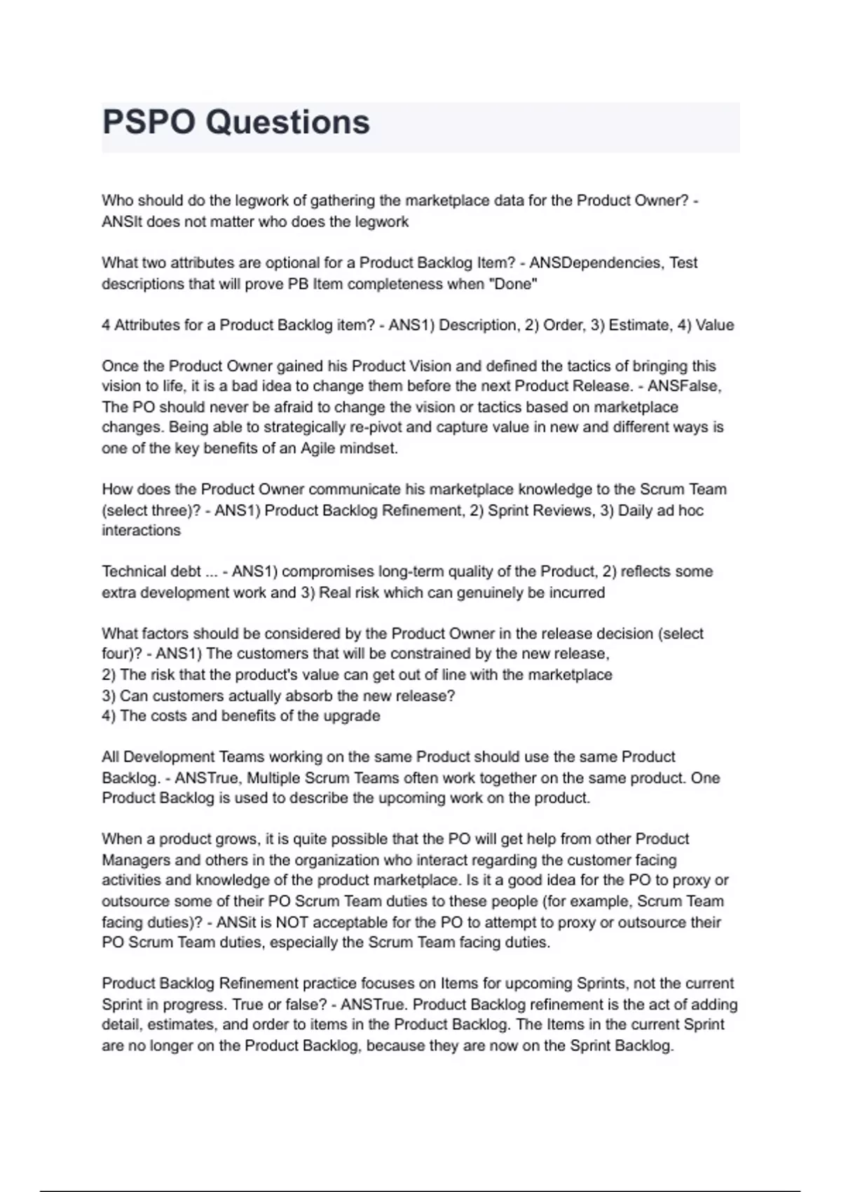 PSPO Questions and answers A+ score assured 2024/2025
