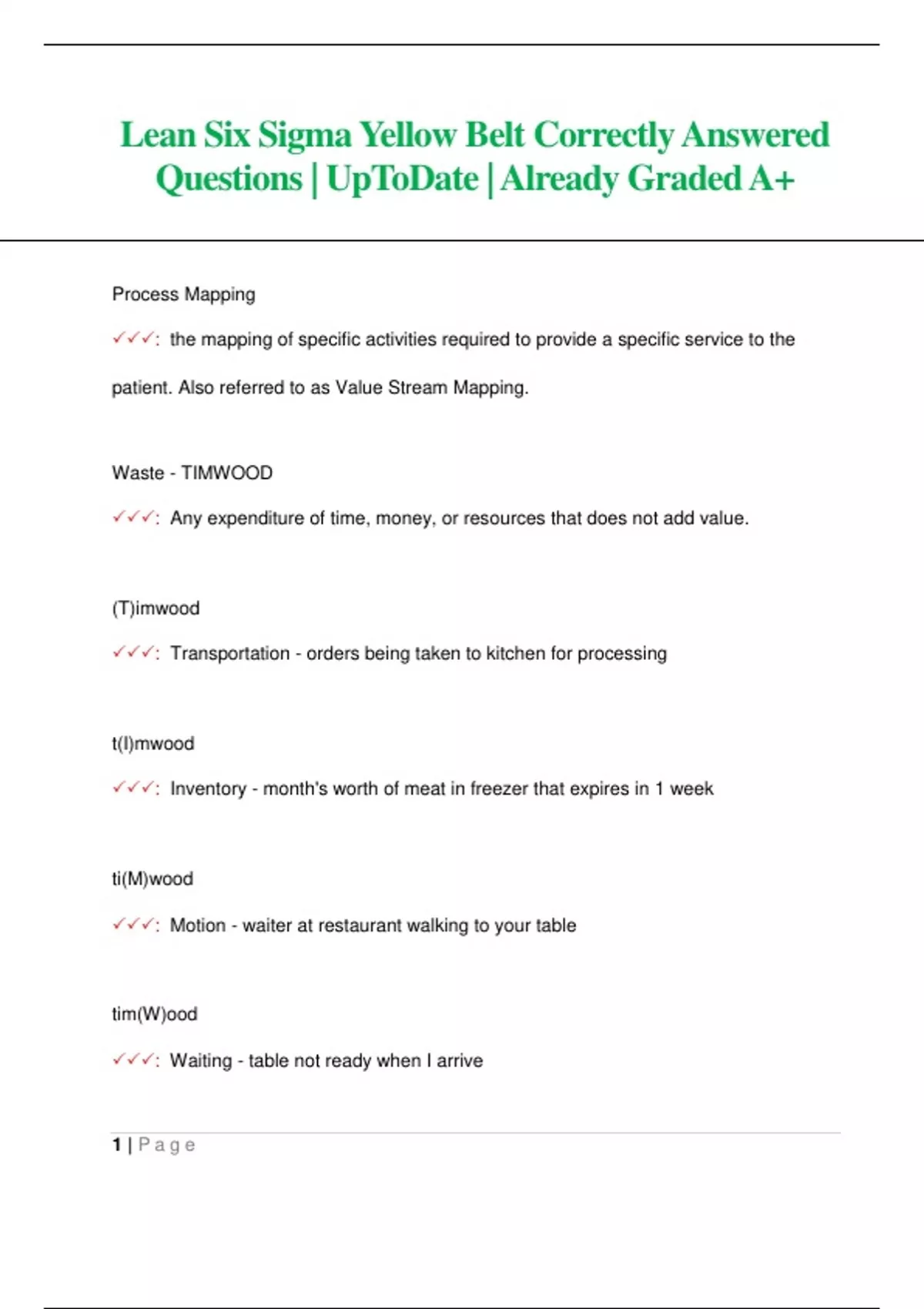 Lean Six Sigma Yellow Belt Correctly Answered Questions| UpToDate | Already Graded A+