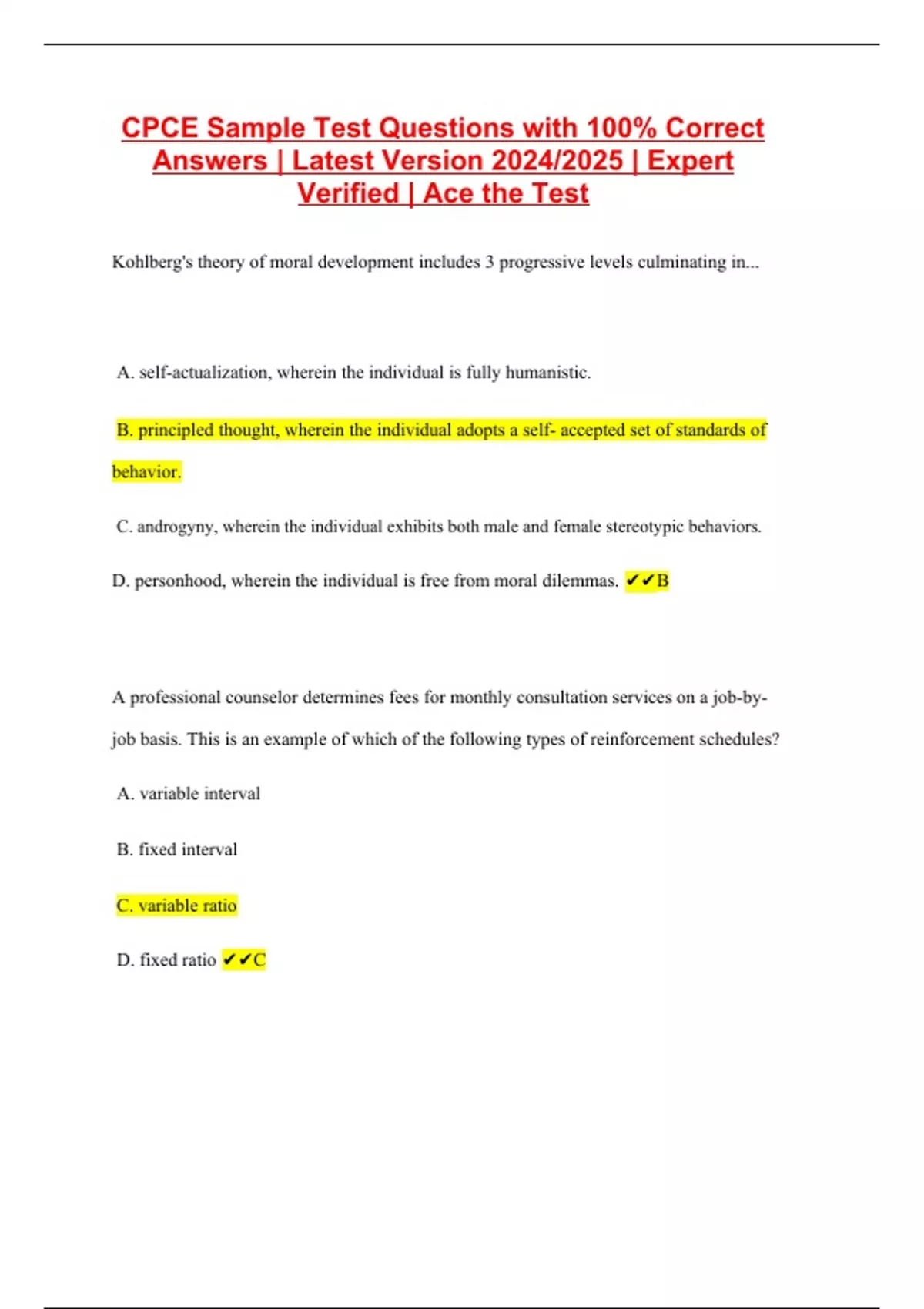 CPCE Sample Test Questions with 100% Correct Answers | Latest Version 2024/2025 | Expert Verified | Ace the Test