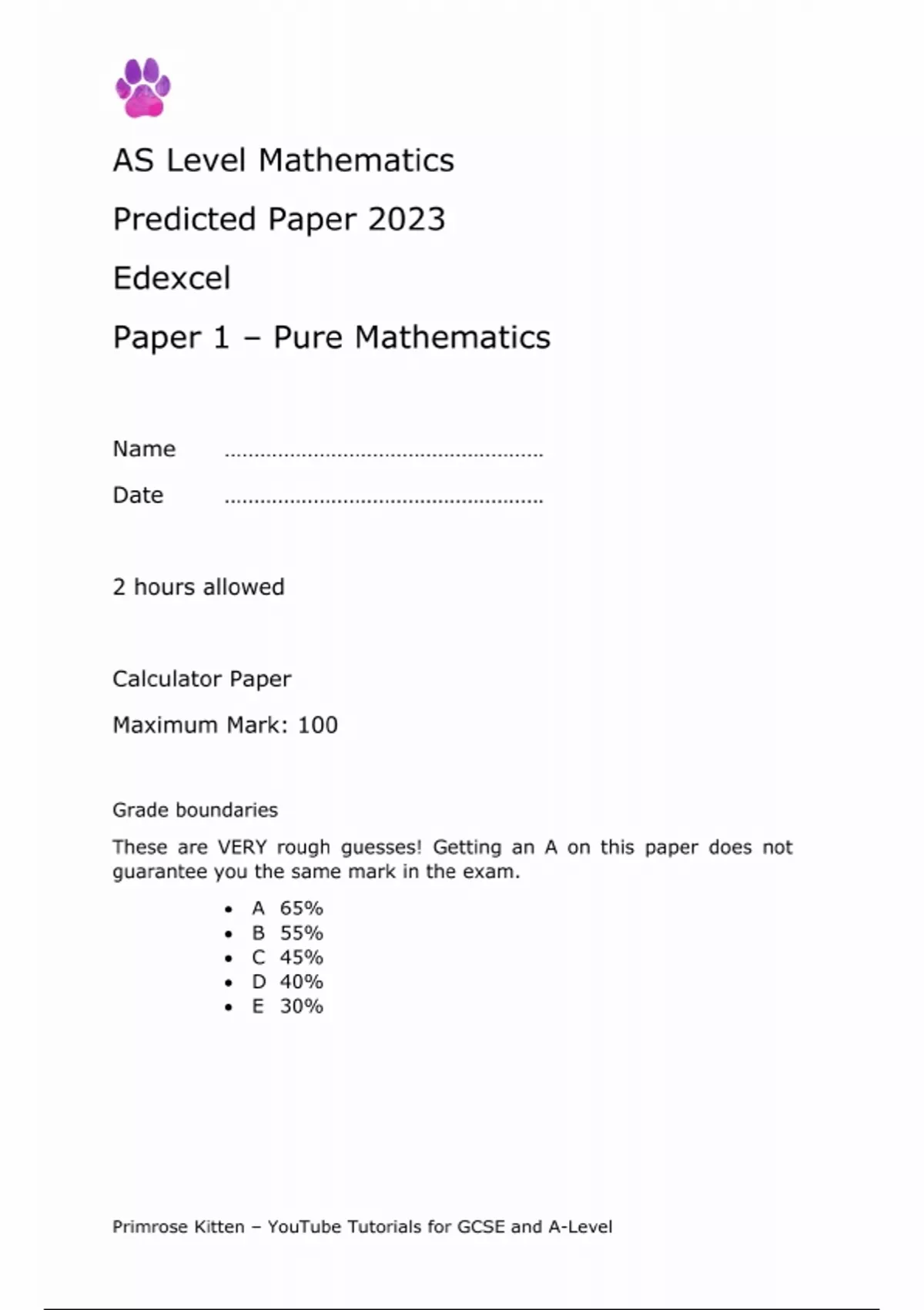 - EDEXCEL AS MATHEMATICS PREDICTED PAPER 1 2023