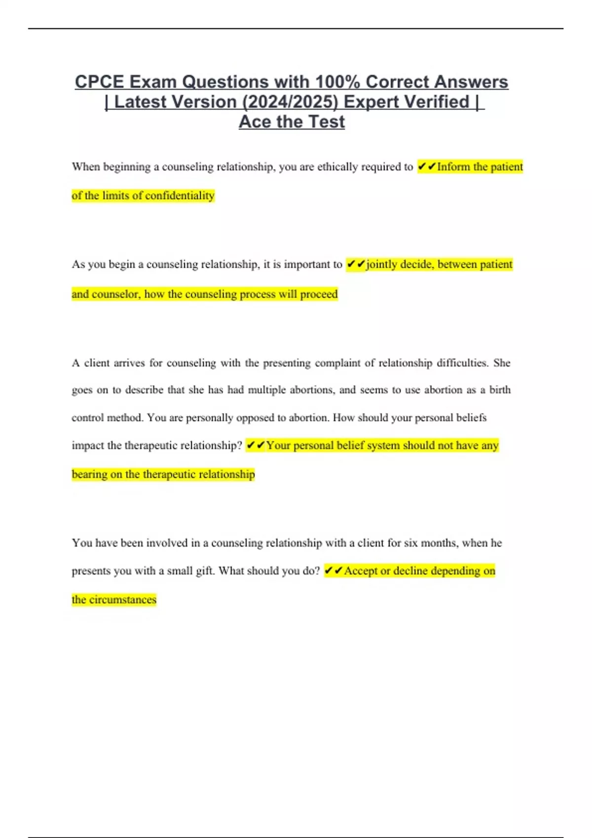 CPCE Exam Questions with 100% Correct Answers | Latest Version (2024/2025) Expert Verified | Ace the Test