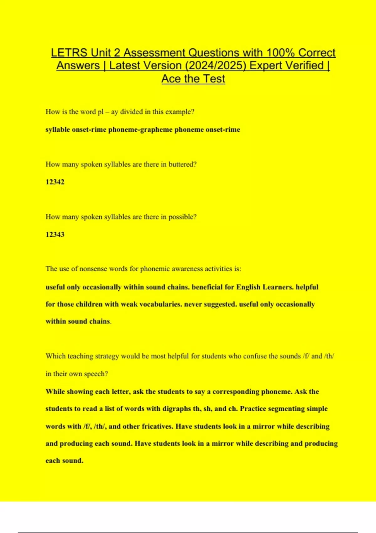 LETRS Unit 2 Assessment Questions with 100% Correct Answers | Latest Version (2024/2025) Expert Verified | Ace the Test