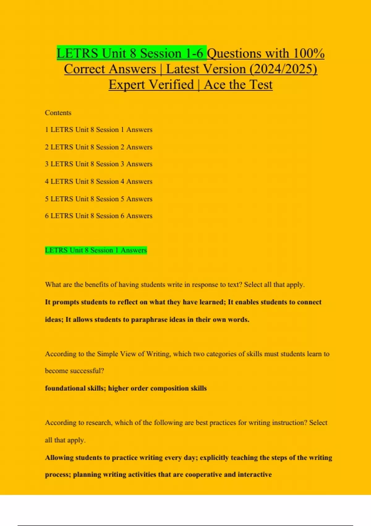 LETRS Unit 8 Session 1-6 Questions with 100% Correct Answers | Latest Version (2024/2025) Expert Verified | Ace the Test
