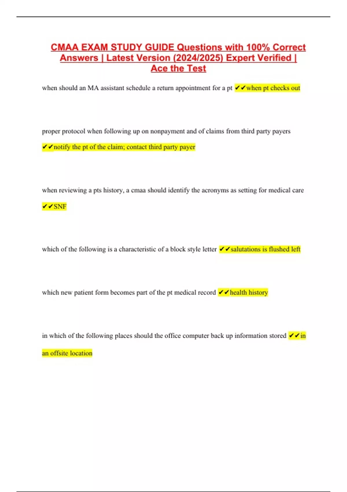 CMAA EXAM STUDY GUIDE Questions with 100% Correct Answers | Latest Version (2024/2025) Expert Verified | Ace the Test